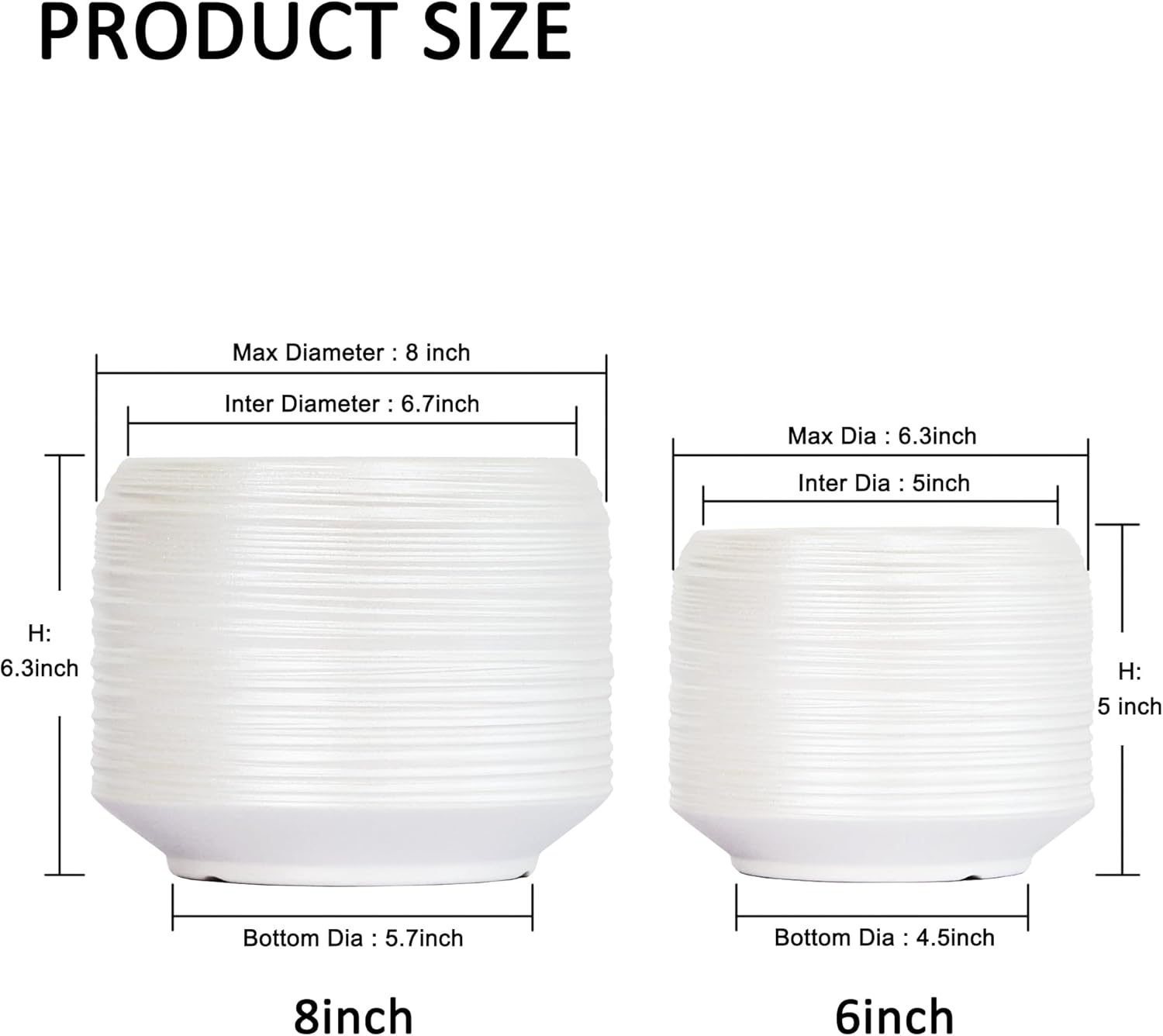 - 【Modern Decorative Planters】:Designed with a raised line-textured finish and modern silhouette, these indoor ceramic plant pots add visual interest to any space—whether styled as 6 inch decorative plant pots or 8 inch flower pots on countertops and shelves.