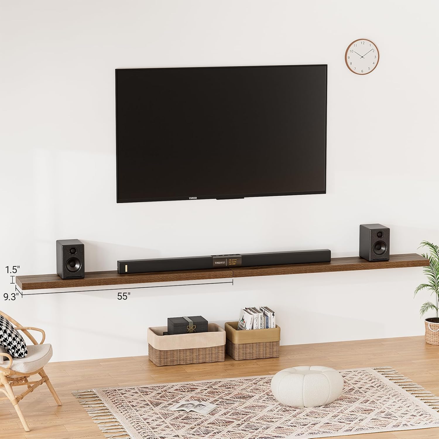 - 【Longer Design】Our pretty wall shelves are 55"W x 9.3"D x 1.5"H.Our walnut floating shelves is longer than traditional designs and can hold more items.The floating shelf optimize wall space,helping organize essentials without taking up floor space in your home.