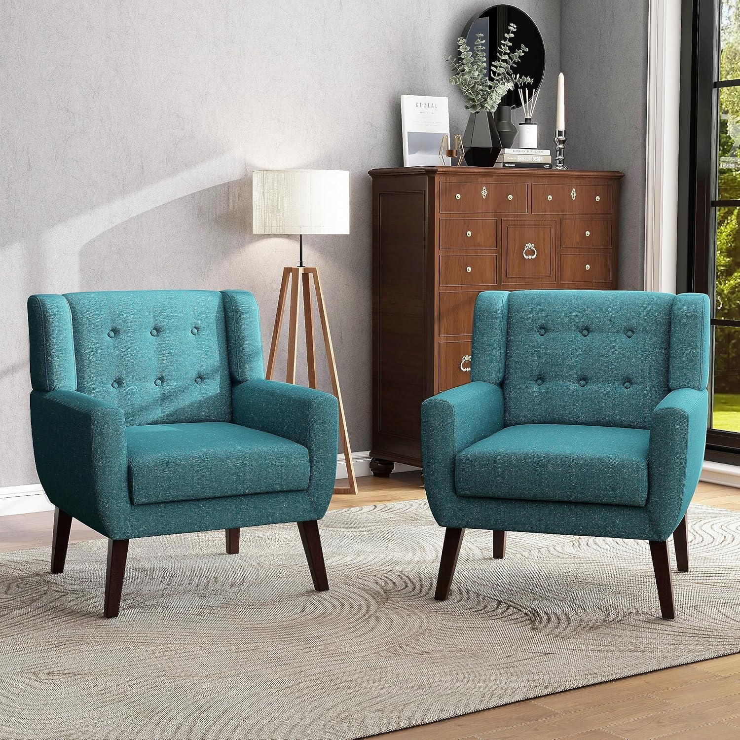 UIXE Accent Chair, Modern Upholstered Armchair in Fabric for Living Room, Comfy Club Arm Chairs Single Sofa Button Tufted Bedroom Reading Seat - Turquoise Blue, Set of 2
