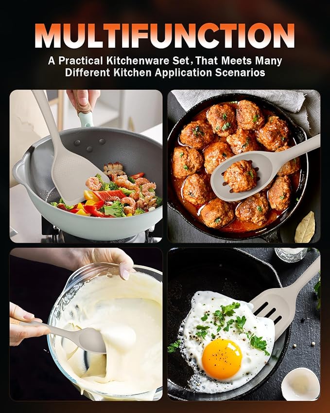 - Gentle on cookware: With smooth edges, our silicone Cooking Utensils protects non-stick cookware from scratches and damage