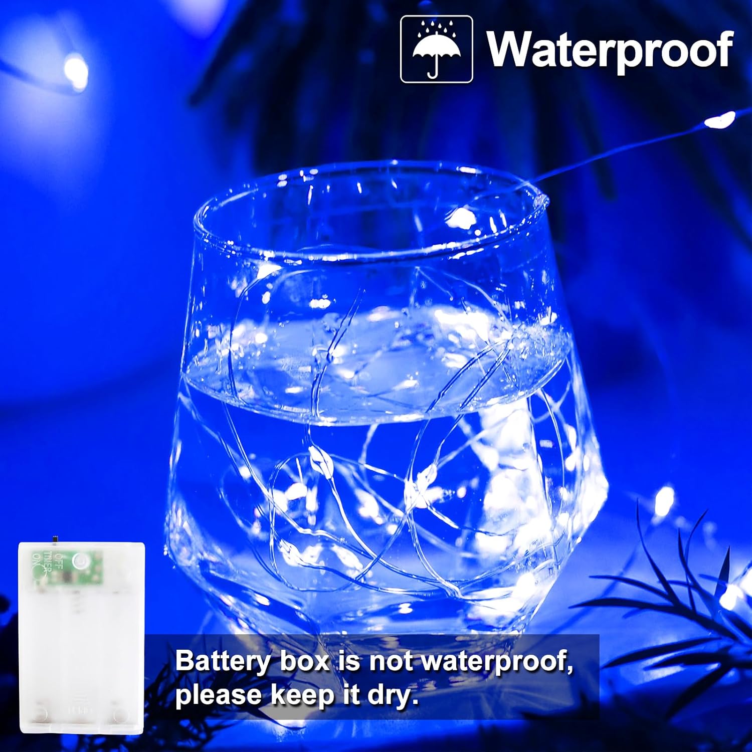 - Waterproof Design: IP65 waterproof rating allows indoor and outdoor use without worry of moisture or weather damage.Battery box is not waterproof,keep it dry.