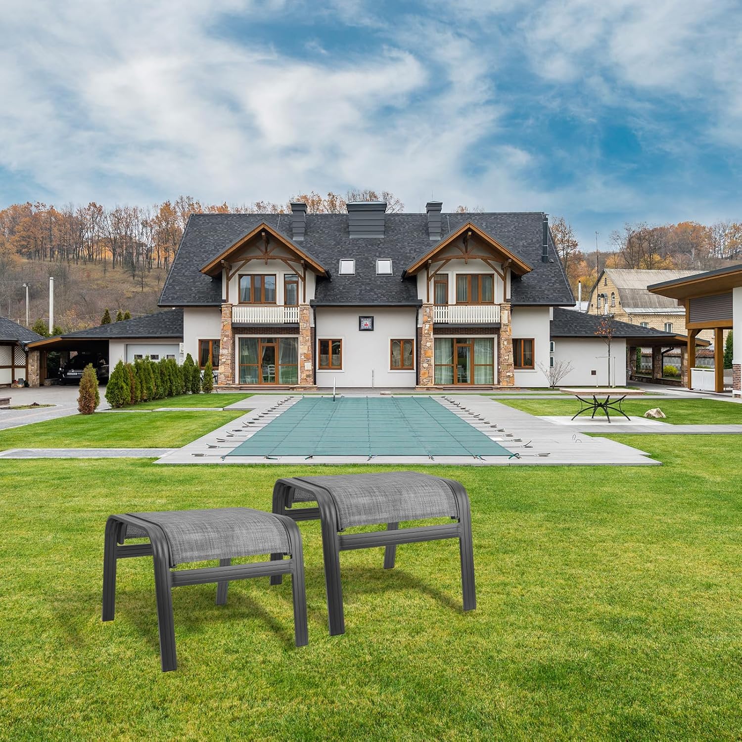 Patio Outdoor Ottoman Footstools Assembled Aluminum Footrest Side Table Small Chairs Patio Ottoman 2 Set Grey