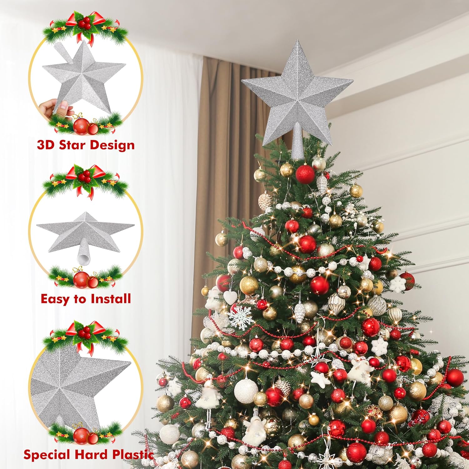 - Versatile Elegance - Our Star Tree Topper Transforms Homes, Offices, and Festive Gatherings into a Christmas Wonderland. Share the Joy!