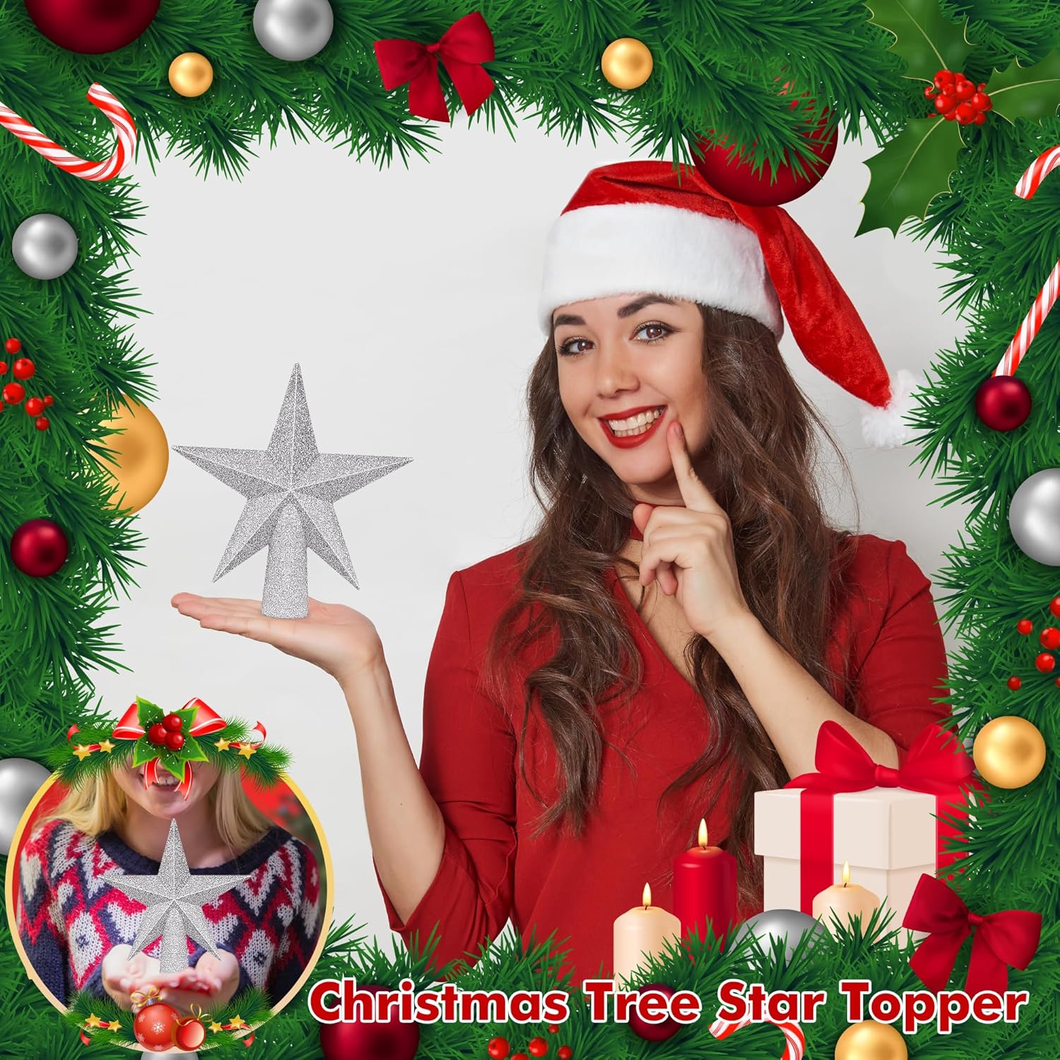 Tree Topper, 6" Silver Christmas Tree Topper with Glitter, 3D Bethlehem Star Xmas Tree Topper Decorations, Waterproof Shatter-Proof Tree Decoration for Christmas Holiday Home Indoor and Outdoor