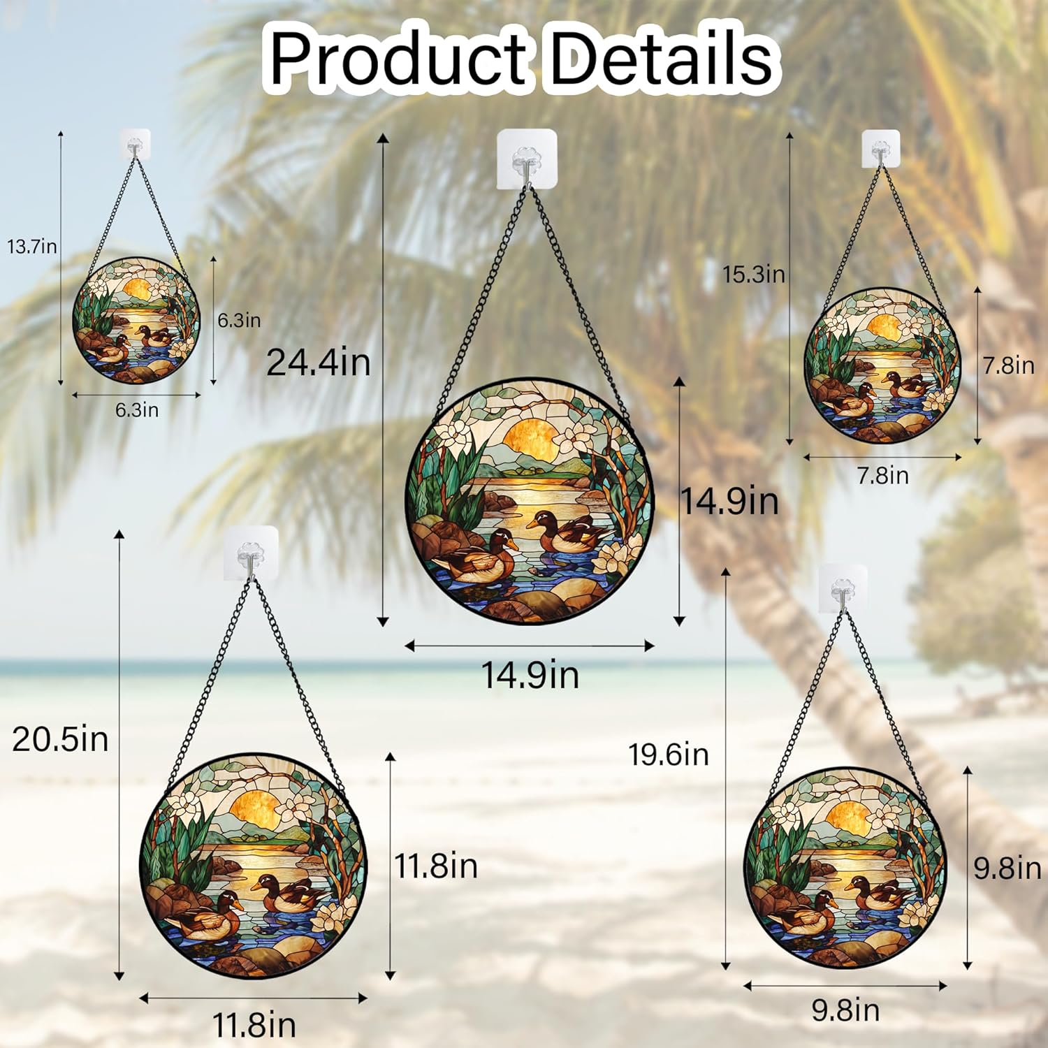 Stained Glass Window Hanging, Ducks in The Pond Sun Catcher for Door Home Decor Landscape Plant Suncatcher Christmas Mother's Day Birthday Gifts for Women Men Mom Nana 9.8 in