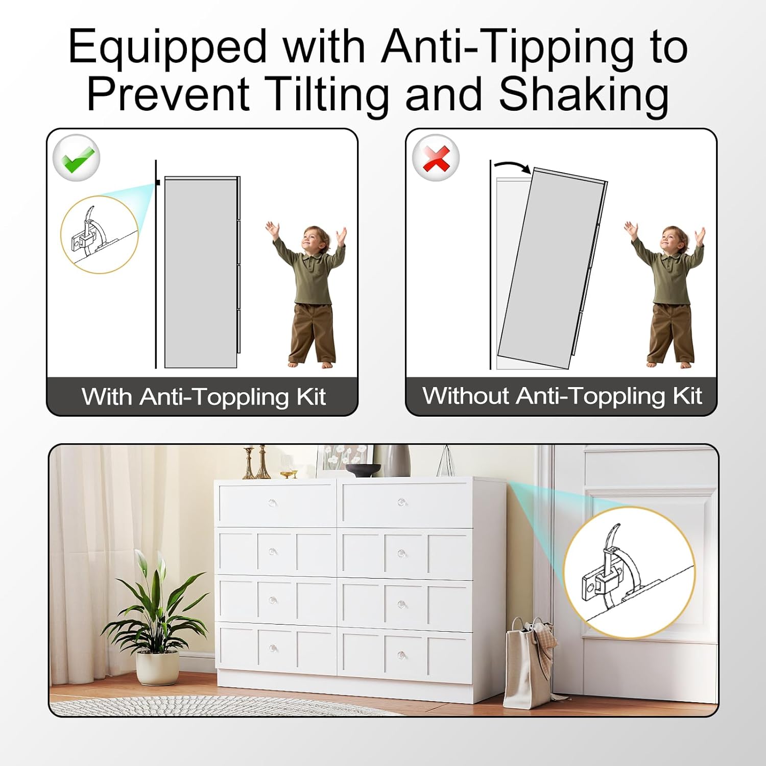 - Durable & Stable Construction Built to last, this white dresser 8 drawer for bedroom features premium ball-bearing drawer glides for smooth operation and exceptional weight capacity. Whether storing clothes, toys or office supplies, the white 8 drawer dresser wide maintains steadfast stability. The white 8 drawer dressers for bedroom retains its flawless performance and appearance even with daily use over time.