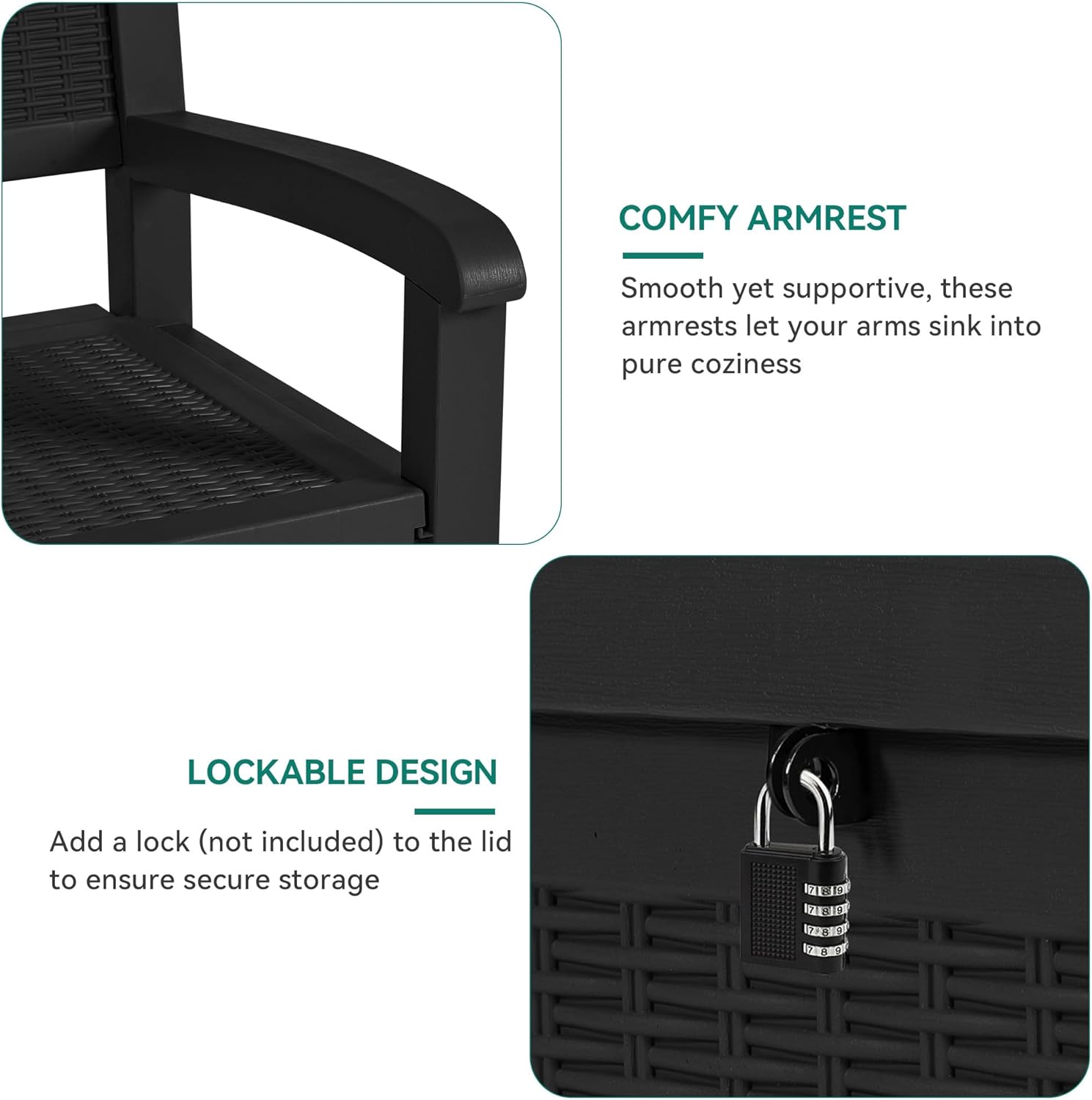 - Quick Assembly: Assemble this storage bench outside in just 30 minutes; Its stylish rattan finish effortlessly blends into any decor, adding a touch of sophistication to your deck or porch with minimal effort