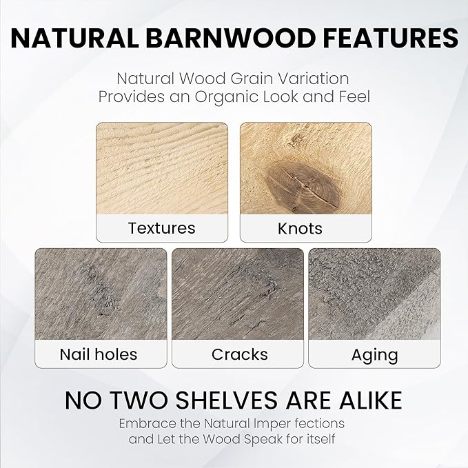 - Included Components : Rustic Reclaimed Wood Shelvesa