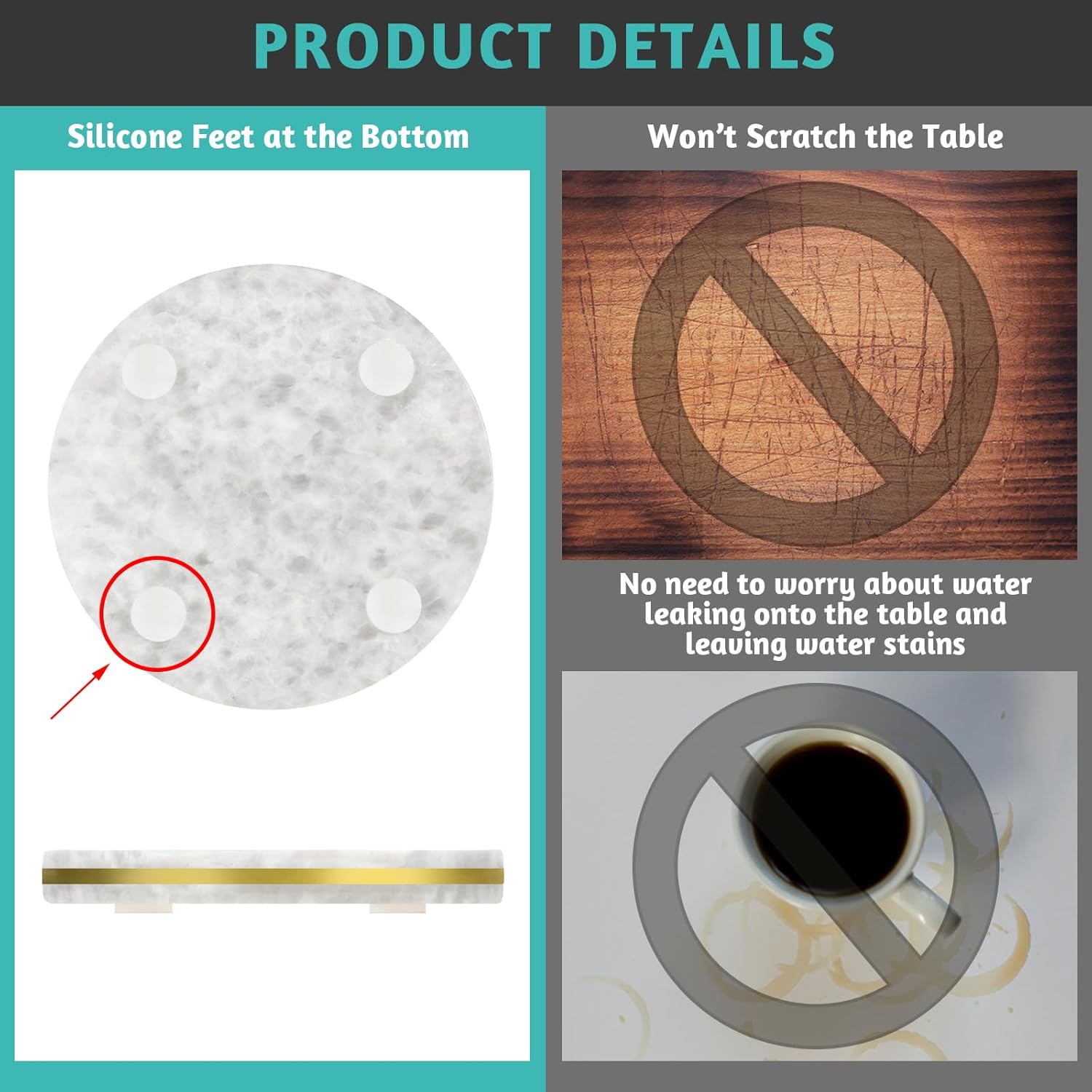 - [ Package Includes ]: Set of 4 round marble coasters, each measuring 4" in diameter and 0.4" in thickness. Each coaster weighs approximately 0.5 lb (220g).