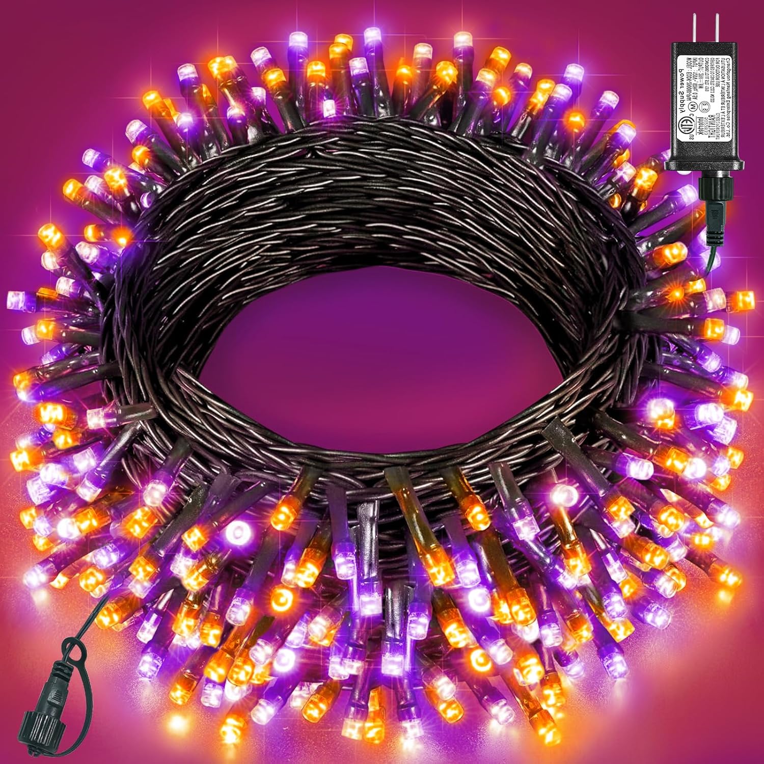 80FT 240 LED Halloween Lights Outdoor, Purple Orange String Lights for Outside with Waterproof 8 Modes, Green Wire Twinkle Tree Light for Indoor Bedroom Patio Garden Party Holiday Decorations