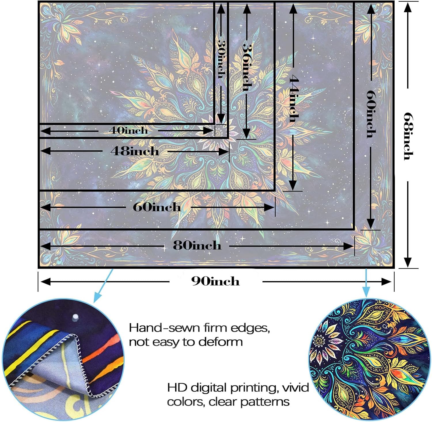 - High-Quality Fabric: Made from durable and lightweight polyester, this boho mandala tapestry wall hanging is soft to the touch yet sturdy enough for long-lasting use. Ideal for indoor or outdoor spaces