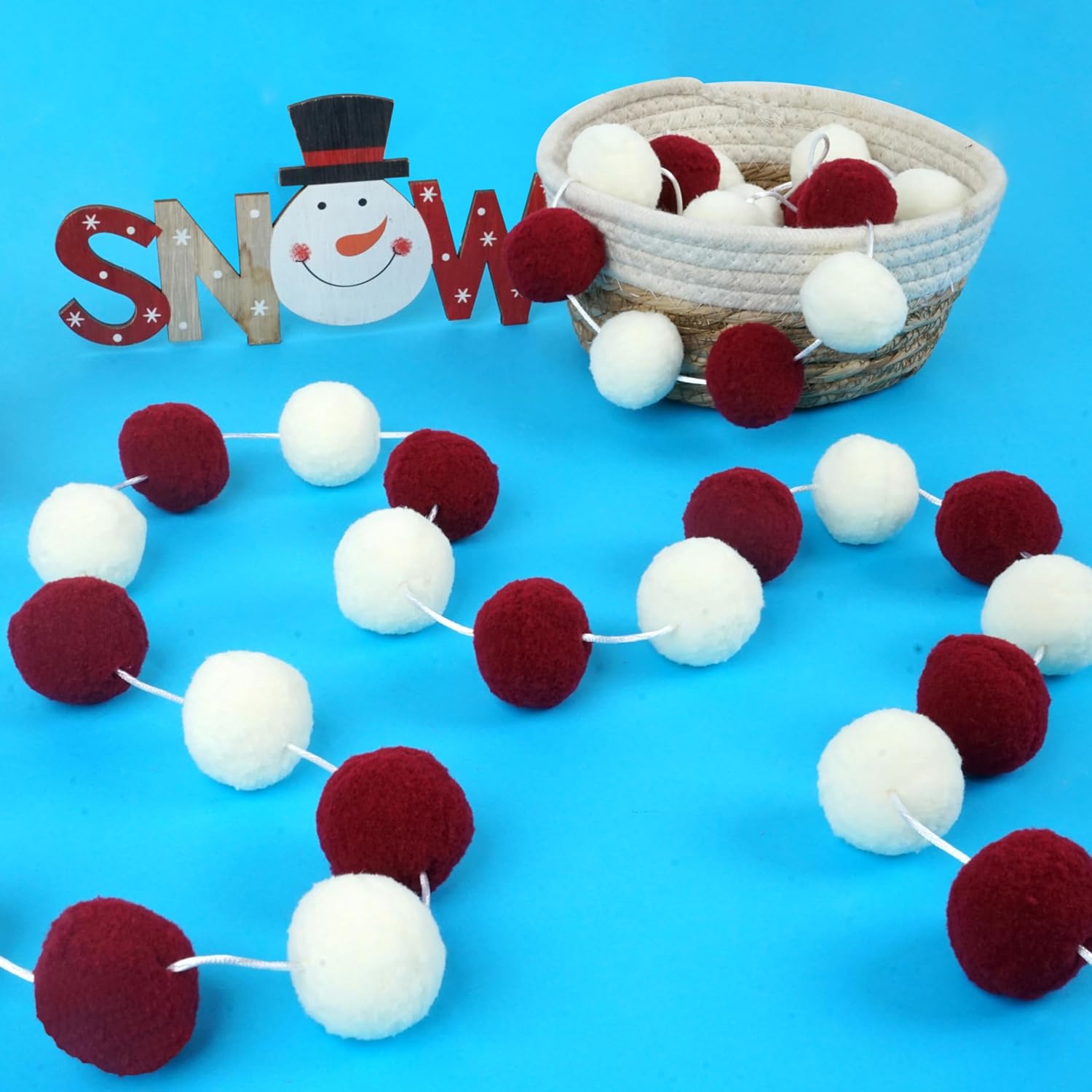 XmasExp Pom Pom Garland Decorations - Large Red Felt Ball Garland for Mantle, Indoor Home Decor, Christmas Tree Ornaments, Kids Room and Party Hanging Decor,13 Ft. (Red, 1.57")