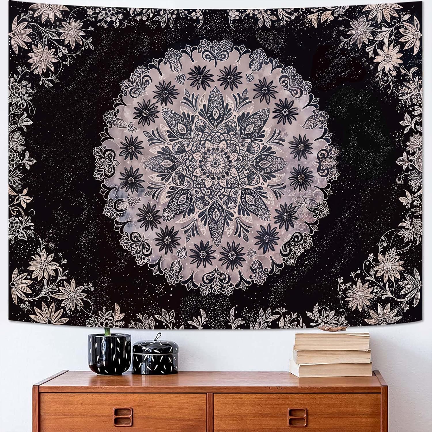 - Intricate Mandala Design: This boho tapestry for bedroom features a beautiful mandala and floral medallion pattern that blends bohemian and modern aesthetics, making it an eye-catching piece of art for your wall