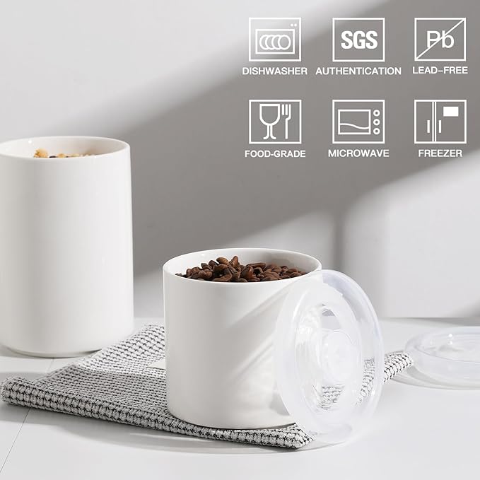 Sweejar Ceramic Food Storage Jar, Salt Container with Airtight Plastic Lid & Date Tracker, 16 Oz Kitchen Canisters for Flour, Rice, Sugar, Coffee, Spices, Pantry Organization (White)