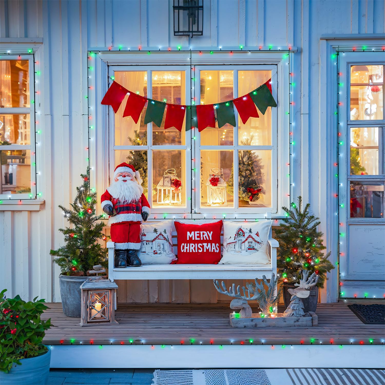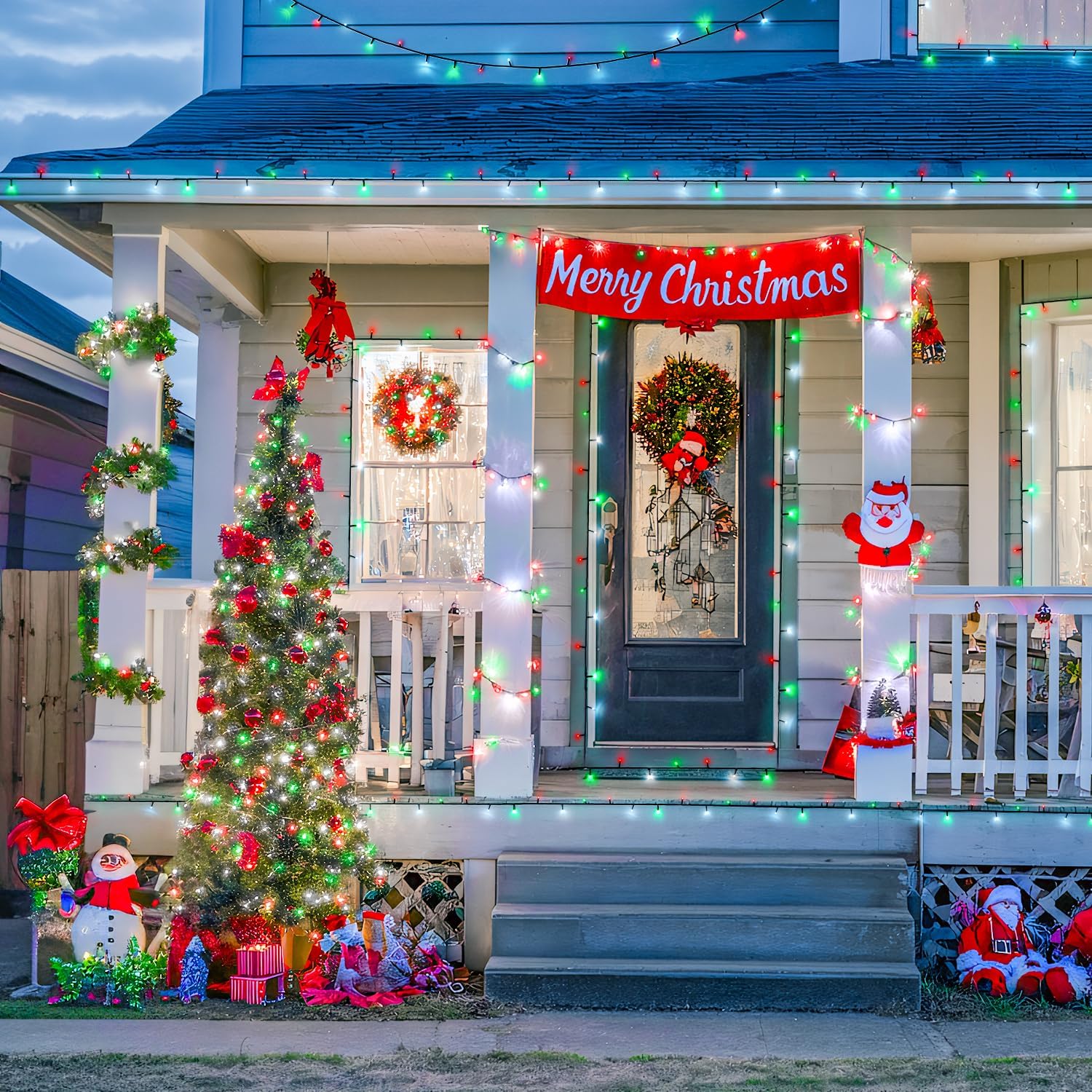 - Waterproof & Safety: We can't tell if it will rain on Christmas, so let's prepare a waterproof red white green solar Christmas lights. The panic is all someone else's! All components of our Christmas lights, including light beads, light wires, and solar panels are IP44 waterproof, so no worries about the weather
