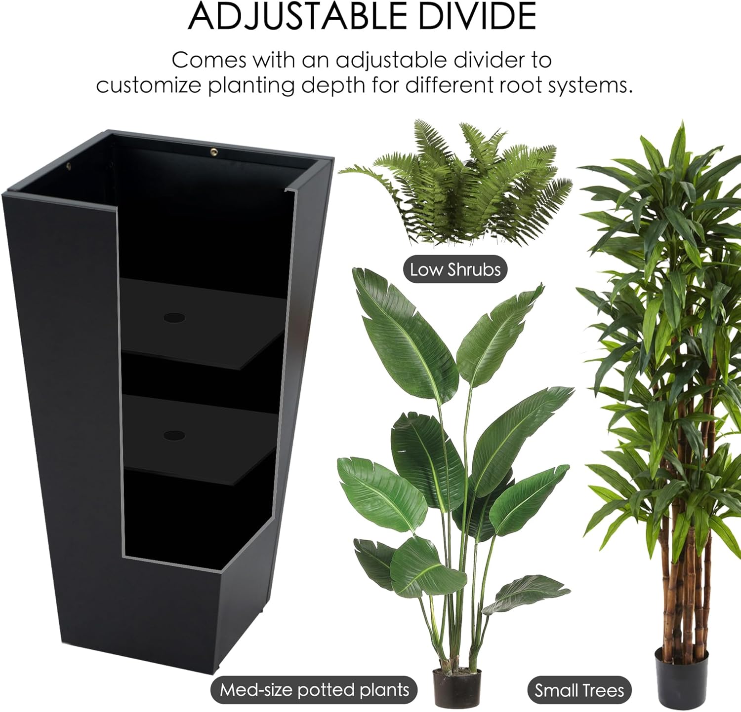 Kozyard 15.4" x 15.4" x 30" Tall Taper Black Metal Planter Flower Plant Pot Indoor Outdoor Planters Steel Flower Pot All-Weather Use with 2 Partition Panels for for Trees, Plants Flowers