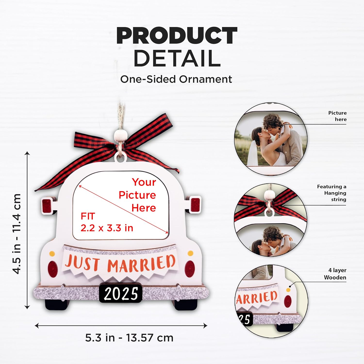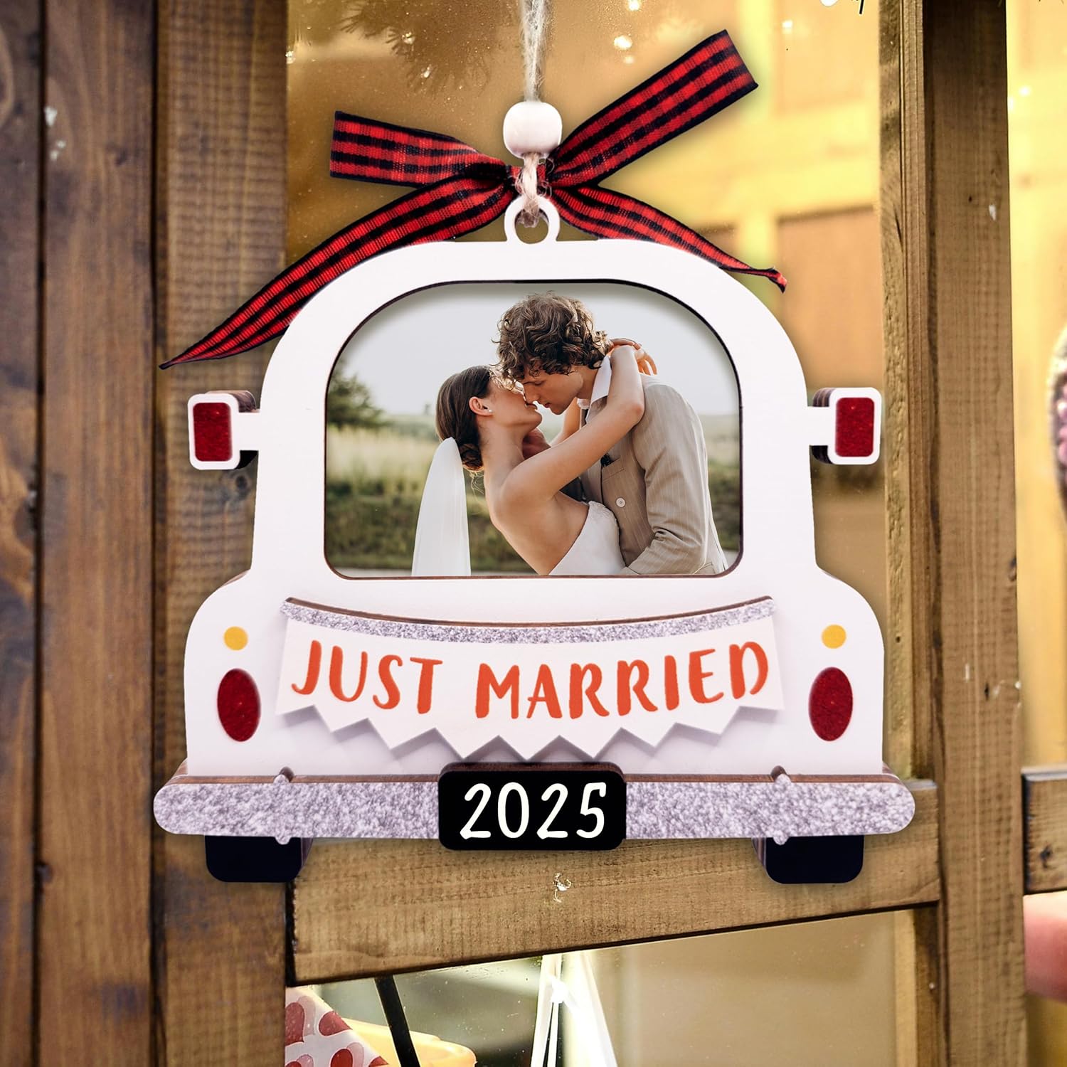 Christmas Photo Frame Ornament, 2025 Ornament, Wooden Picture Frame Ornaments With Hanging String (Just Married 2025)