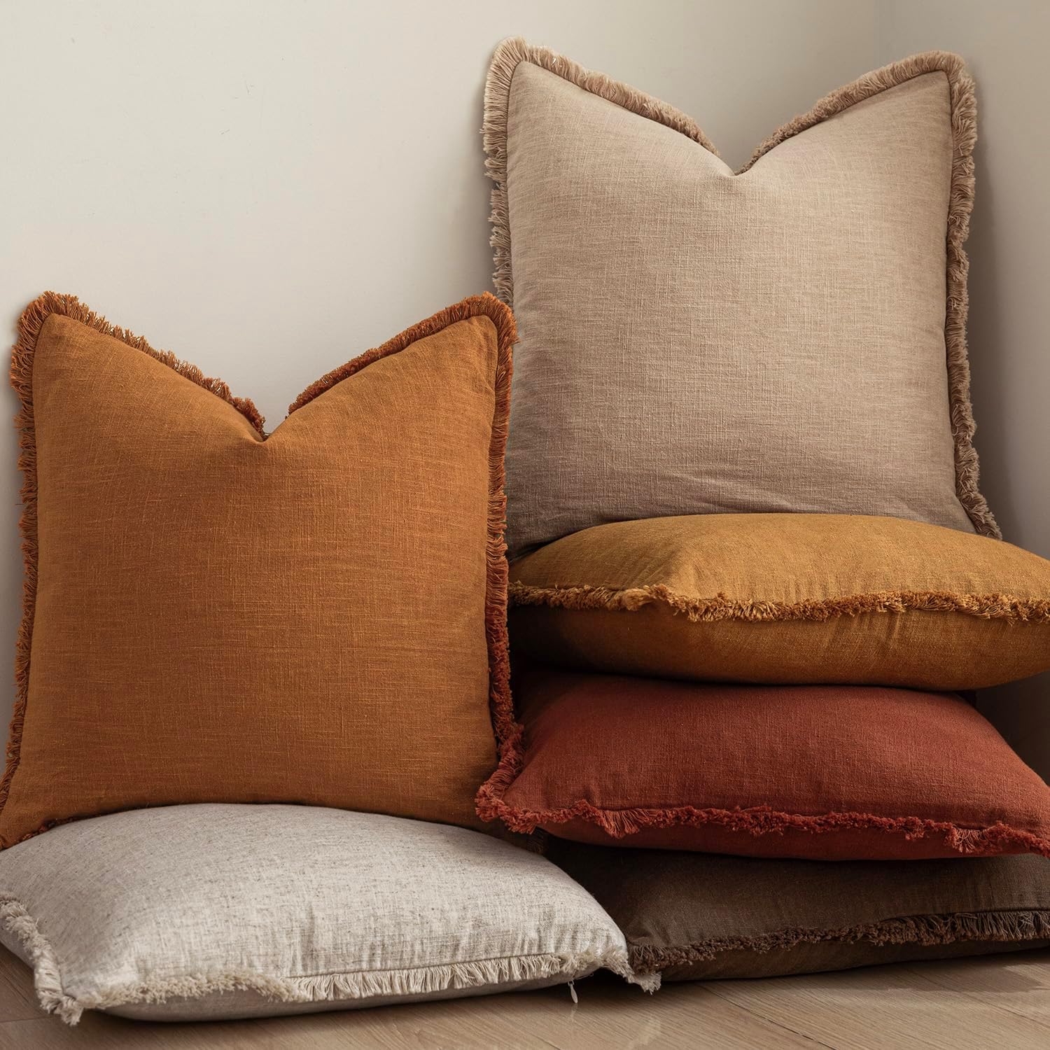 - 【Indoor & Outdoor Use】Available in a range of earthy, goes-with-anything hues for a look that works year-round. Fringed pillow covers is suitable for living room, bedroom, office, sunroom, den, kitchen benches, patio sets, nursery, car seat, floor, and more. You can put them on the sofa, bed, couch, outdoor, etc.