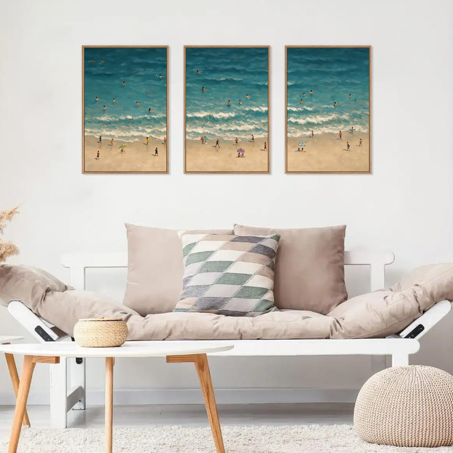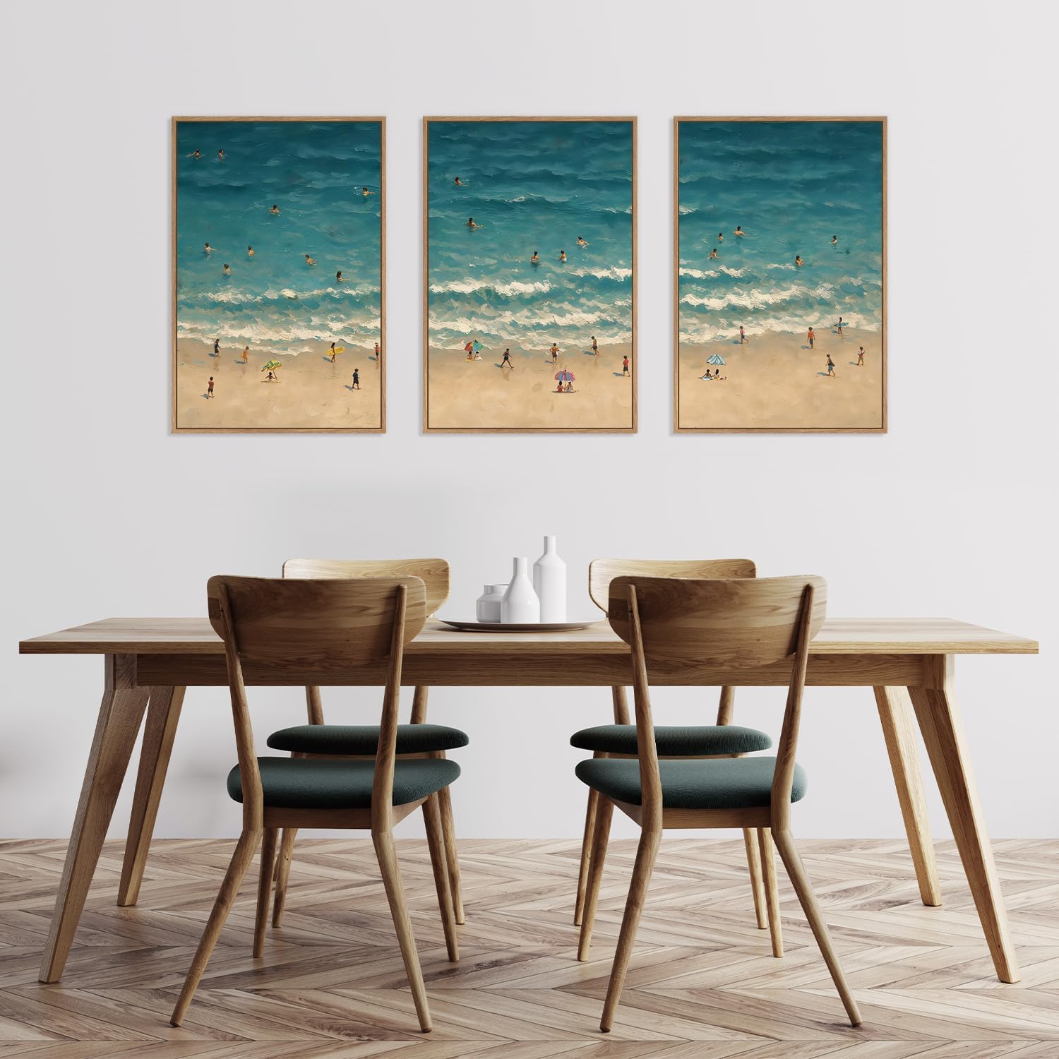 - 【Charming Summer Vibe】This seaside wall art evokes an energetic and reckless beach vibe with its minimalist design depicting people surfing and swimming at the beach in the summer. Perfect for adding a serene coastal touch to your space.