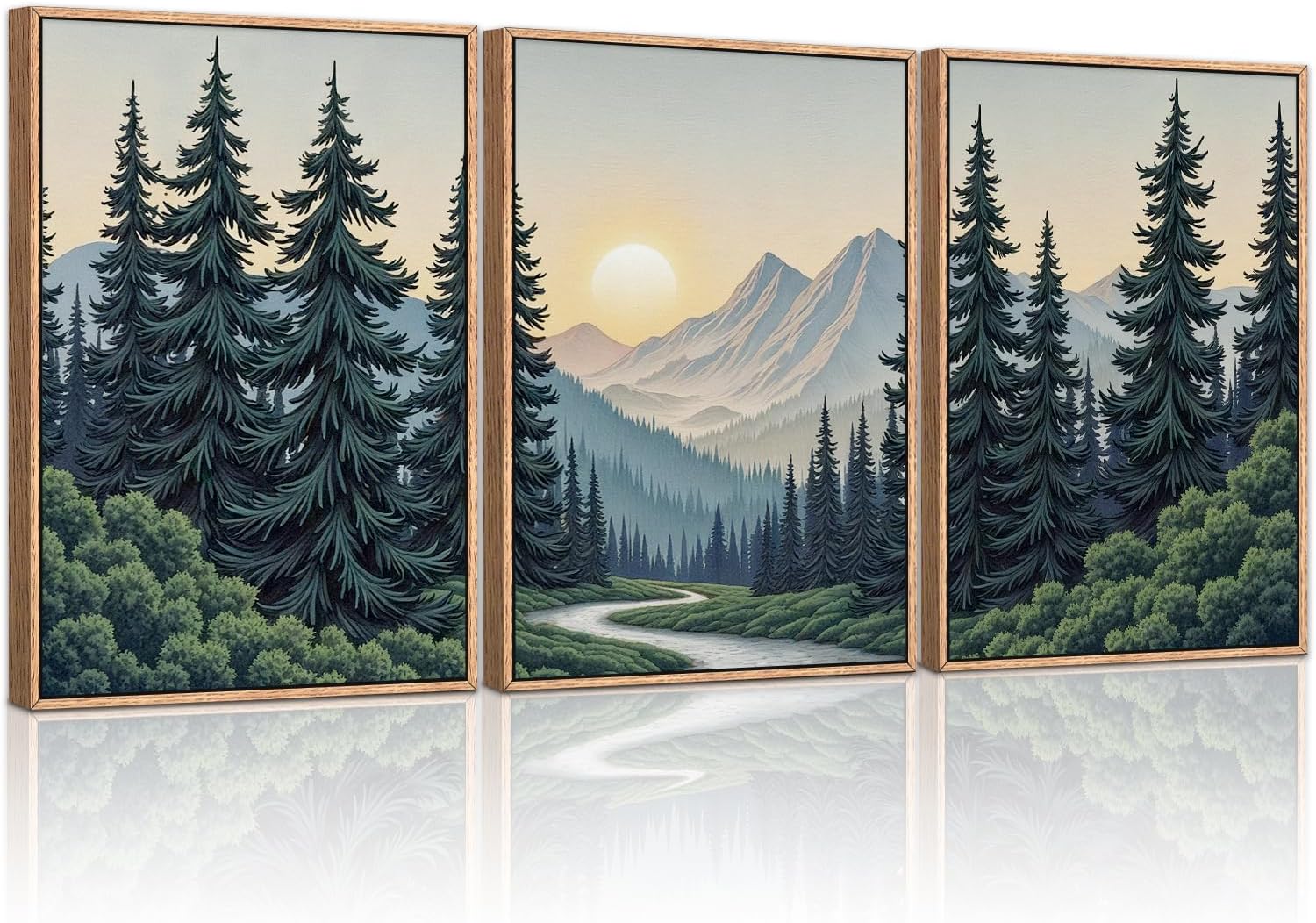 - 【Natural Landscape Wall Art】This forest framed canvas painting vividly captures the serenity and grandeur of nature. Rolling mountains frame the soft skyline, while standing pines and a long-flowing lake exude life.The soft sun adds a touch of mystery and serenity to the whole picture, and together they weave a harmonious picture of natural art that perfectly illustrates people's pursuit of a better life.