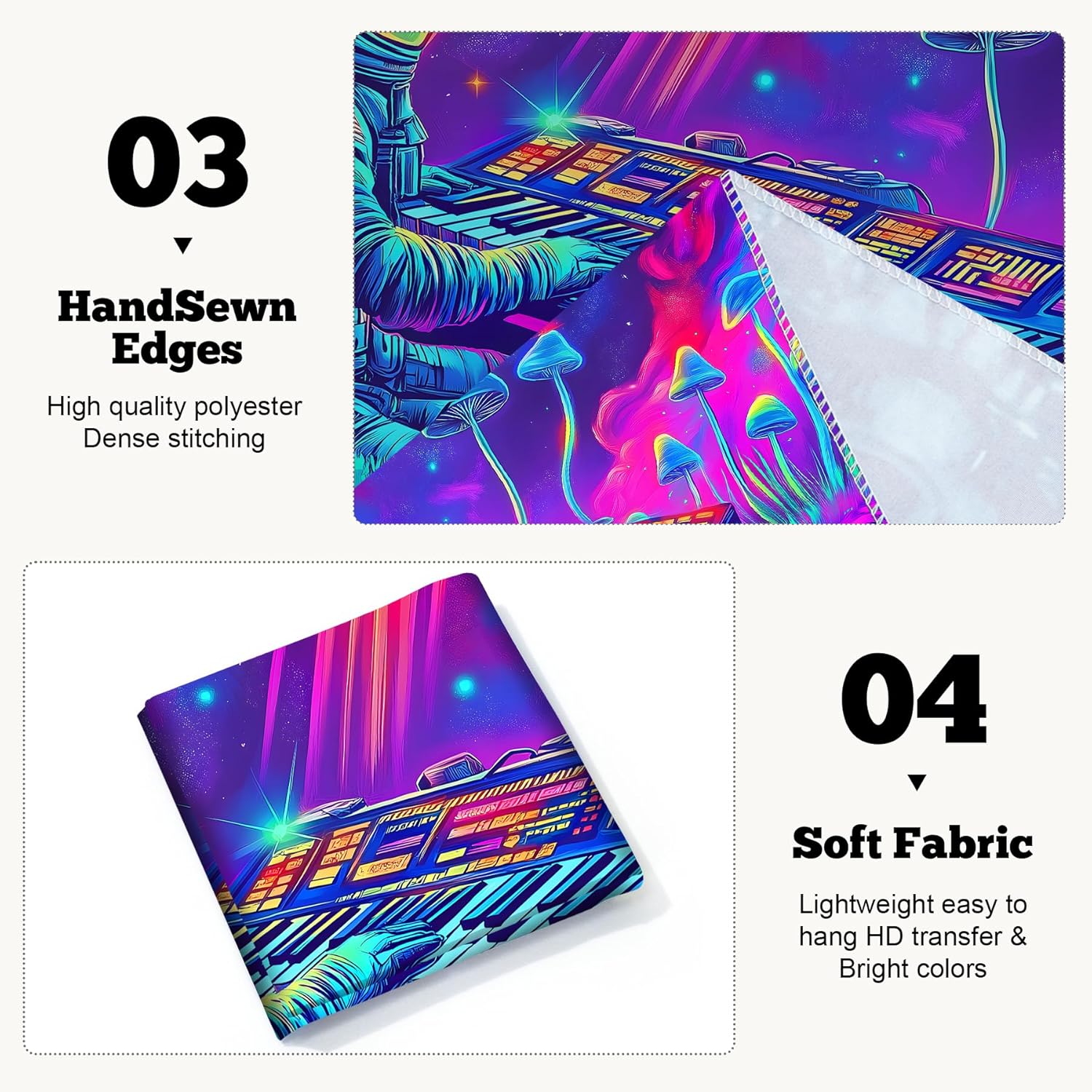 - Versatile Tapestry - With its durable materials and unique design, this blacklight tapestry can serve as a wall hanging tapestry, indie room tapestry, curtain tapestry, dorm room tapestry, ceiling tapestry, bedroom tapestry, glow-in-the-dark artwork or even a picnic blanket.