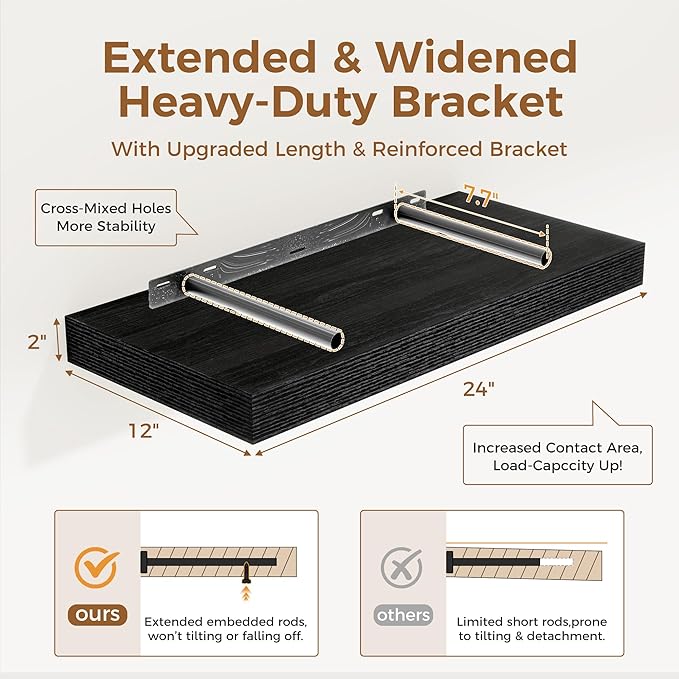 - 【Easy to Assemble】These shelves come with all mounting hardware and instructions. You can install them in less than 15 minutes. If you have any questions about our products, please feel free to contact us and we will try our best to solve them for you!