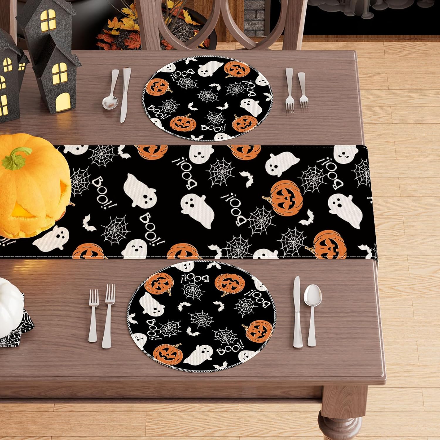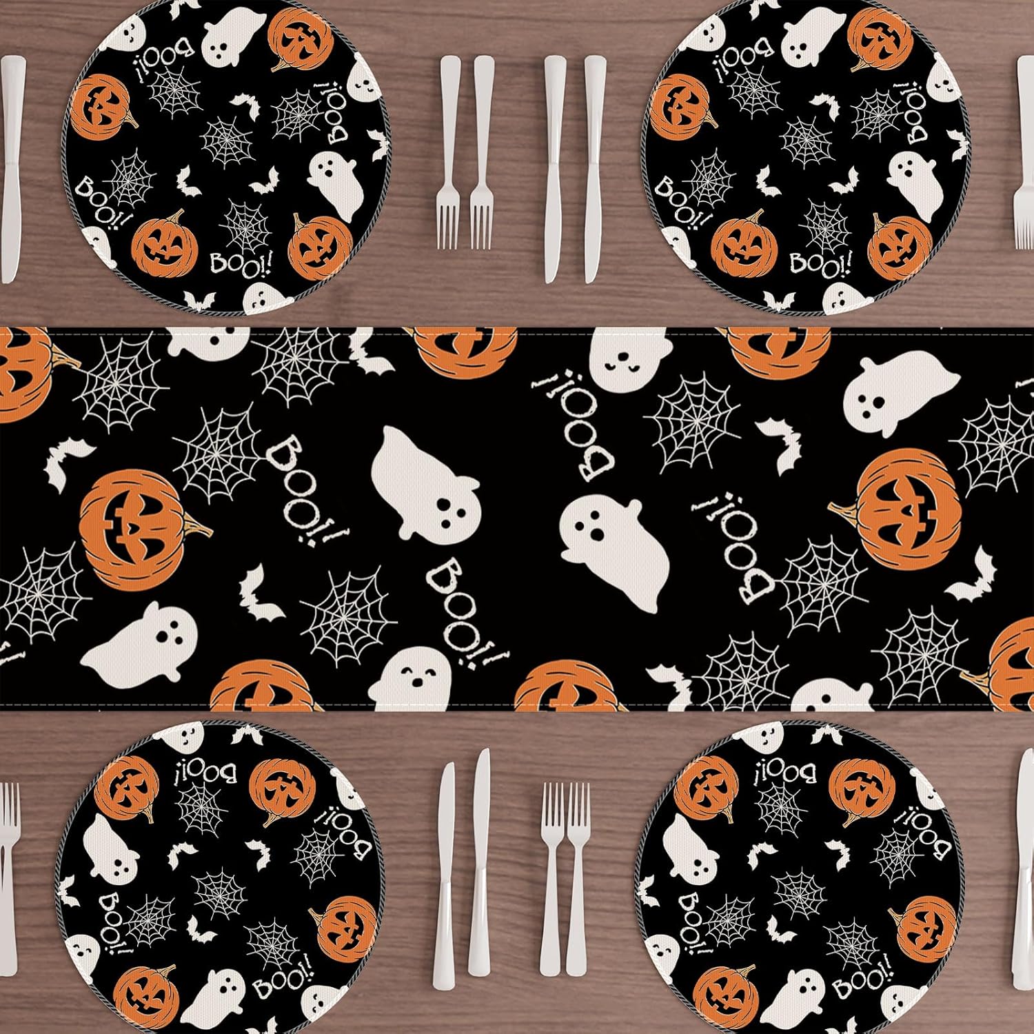 XCHI Boo Spooky Ghost Pumpkin Halloween Round Placemats Set of 4 Table Mats Table Decorations 14x14 Inch