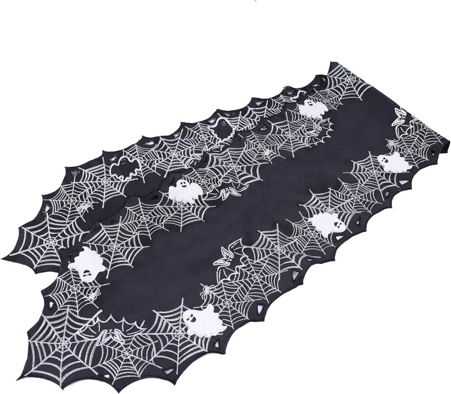 - 🖤 Versatile Seasonal Accent – Whether you're going for a chic gothic look or full-on haunted mansion vibes, this embroidered spiderweb table runner ties your Halloween décor together in a fun yet refined way
