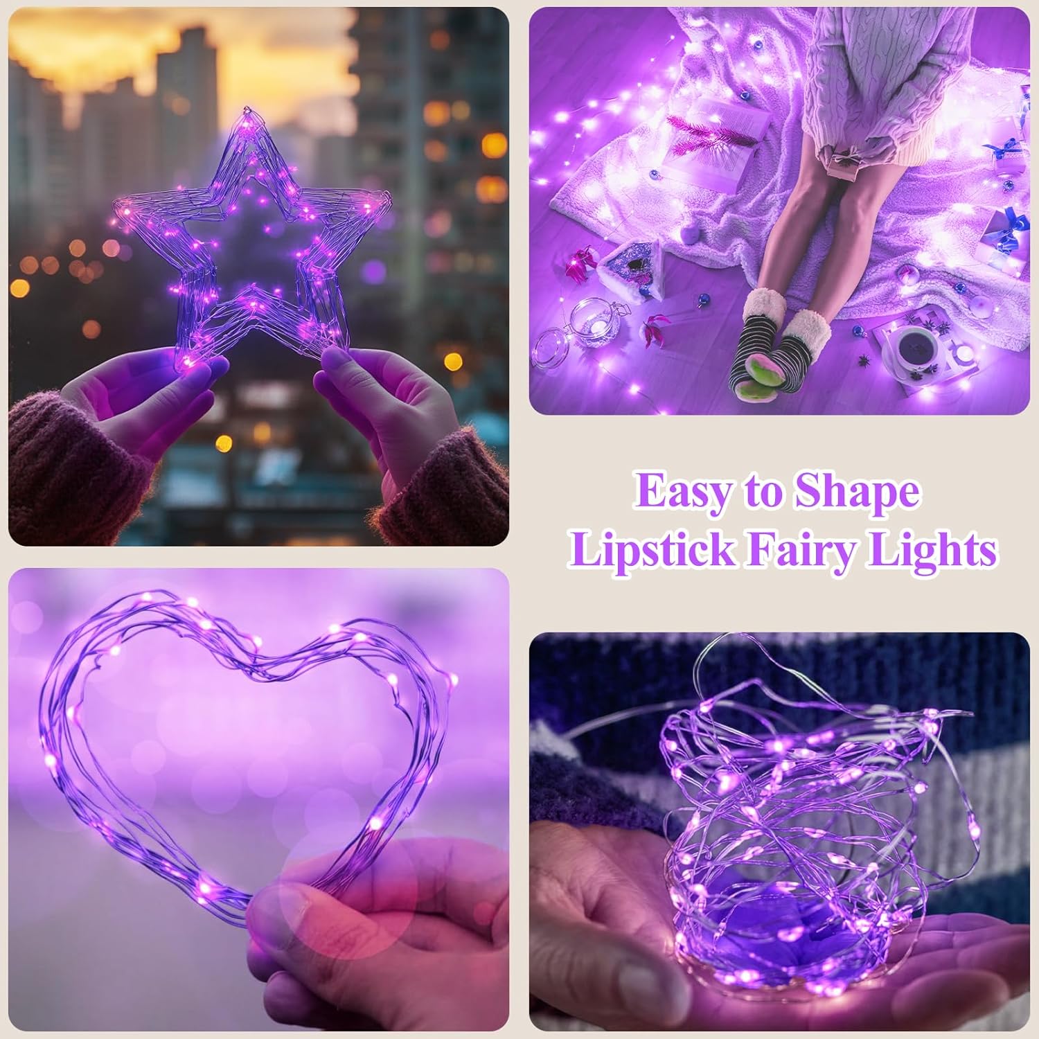 Lakumu Rechargeable Fairy Lights Battery Operated, String Lights with Timer, Mini LED Twinkle Lights for Bedroom, Christmas Decorations, Wedding, Vine, Centerpiece Table Decor (5M/16FT Purple)