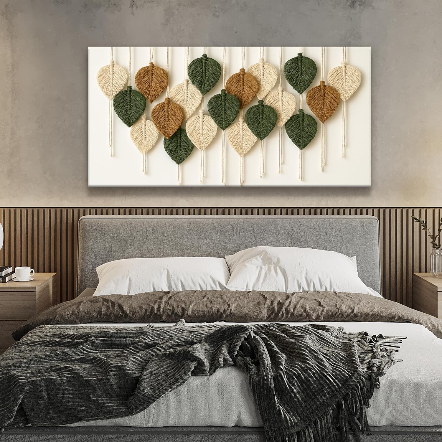 Boho Wall Art Chic Home Wall Art Modern Multicolor Leaves Feather Canvas Wall Art Decor For Living Room Bedroom Apartment Kitchen 24"W X 48"L Ready To Hanging