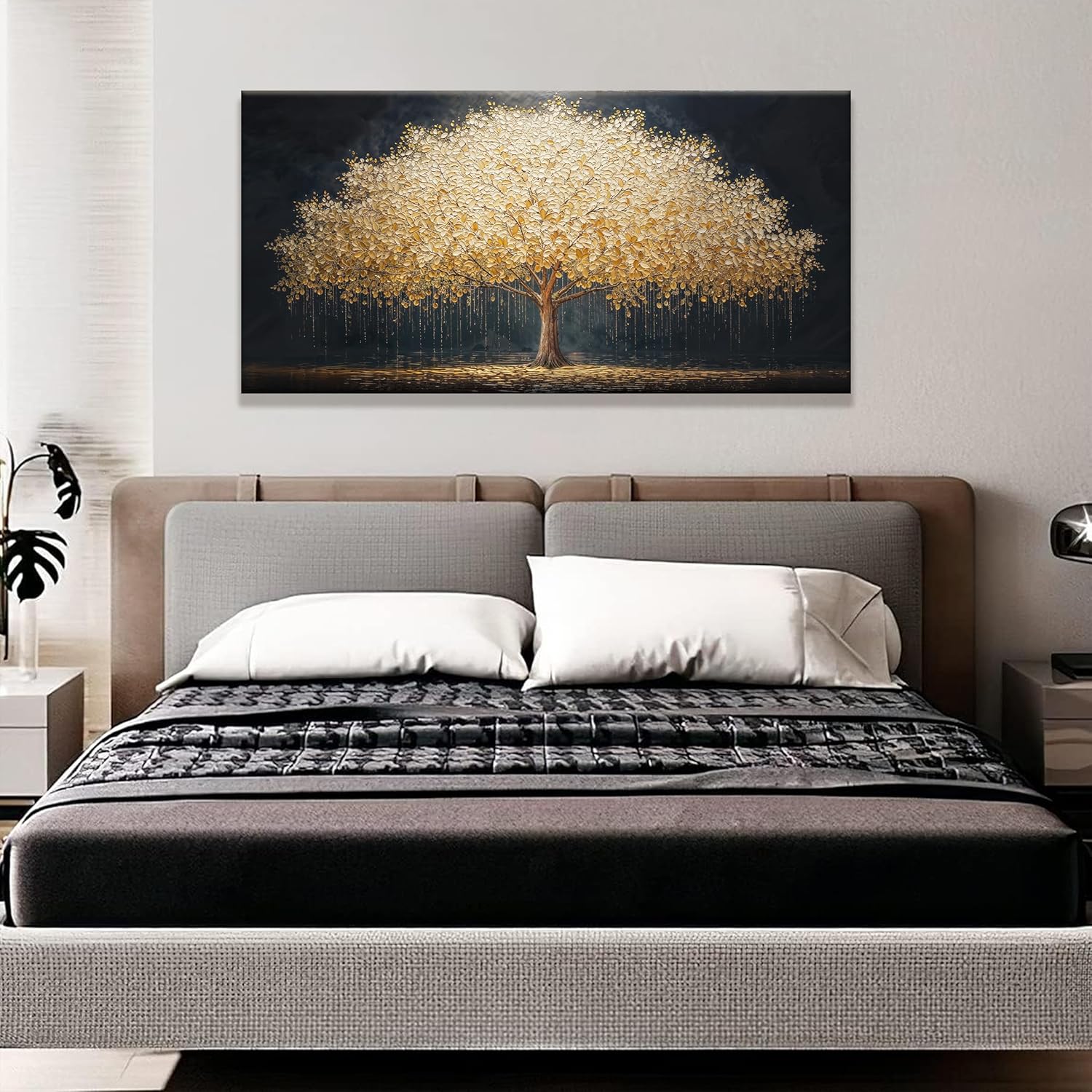 Canvas Wall Art Decor Gold Tree Of Life Abstract Wall Decor Artwork Canvas Prints Painting Gold Tree Wall Art Pictures For Bedroom Dining Room Home Office Artwork 20"X 40" Ready To Hang