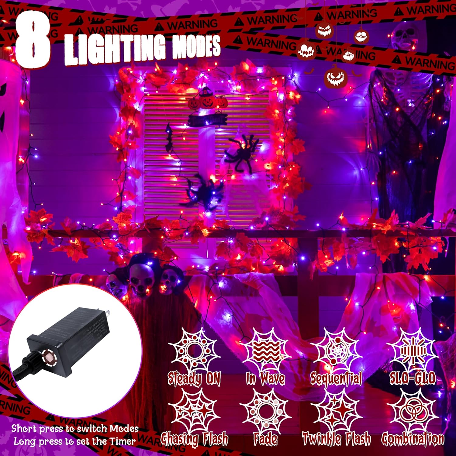 Ollny Halloween Lights Outdoor, 100 LED 33FT Orange and Purple Halloween Decorations with 8 Modes Timer, Plug in String Lights for Indoor Bedroom Home Party Outside