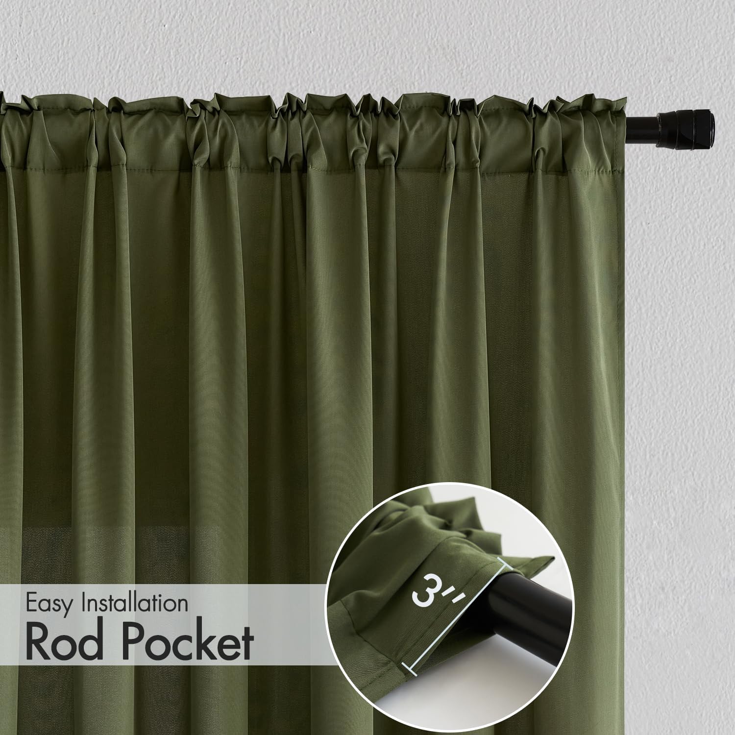 MIULEE Olive Green Privacy Sheer Curtains That Let Light in 84 Inches Long Non-See-Through Semi Sheer Curtain Light Filtering Window Curtains Drapes for Living Room Bedroom 2 Panels Set 42 X 84