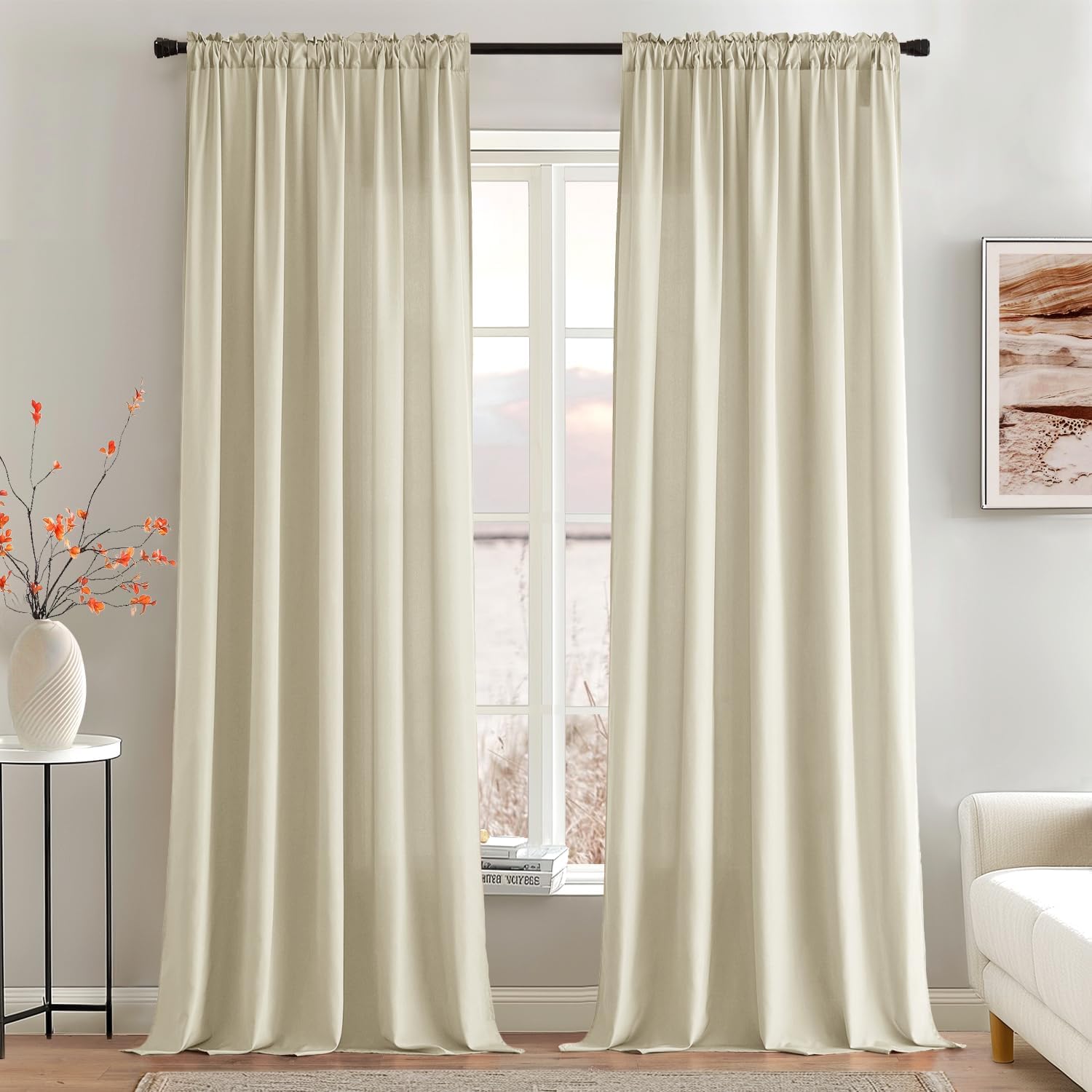 MIULEE Cream Beige Privacy Sheer Curtains That Let Light in 96 Inches Long Non-See-Through Semi Sheer Curtain Light Filtering Window Curtains Drapes for Living Room Bedroom 2 Panels Set 42 X 96