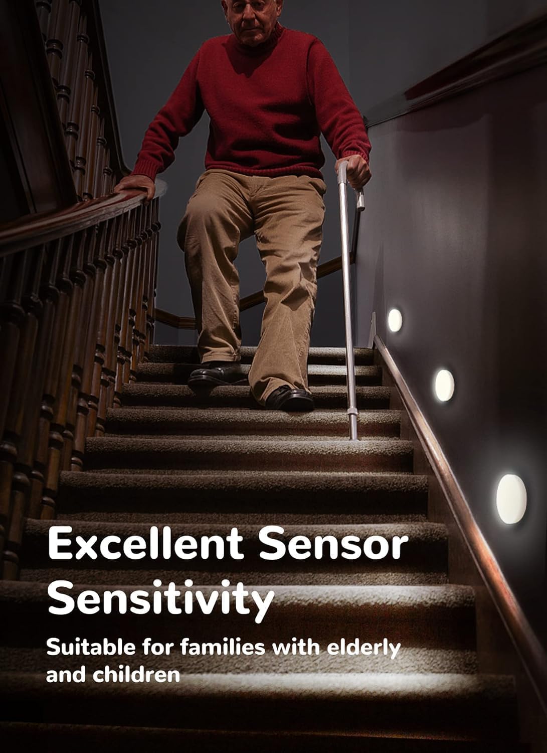 - 【Elderly Safety Night Light】Providing 360° illumination coverage for enhanced visibility in low-light conditions Specially designed for households with seniors/parents who avoid turning on bright overhead lights at night. Within 0.3s at staircases/hallways with non-slip magnetic base
