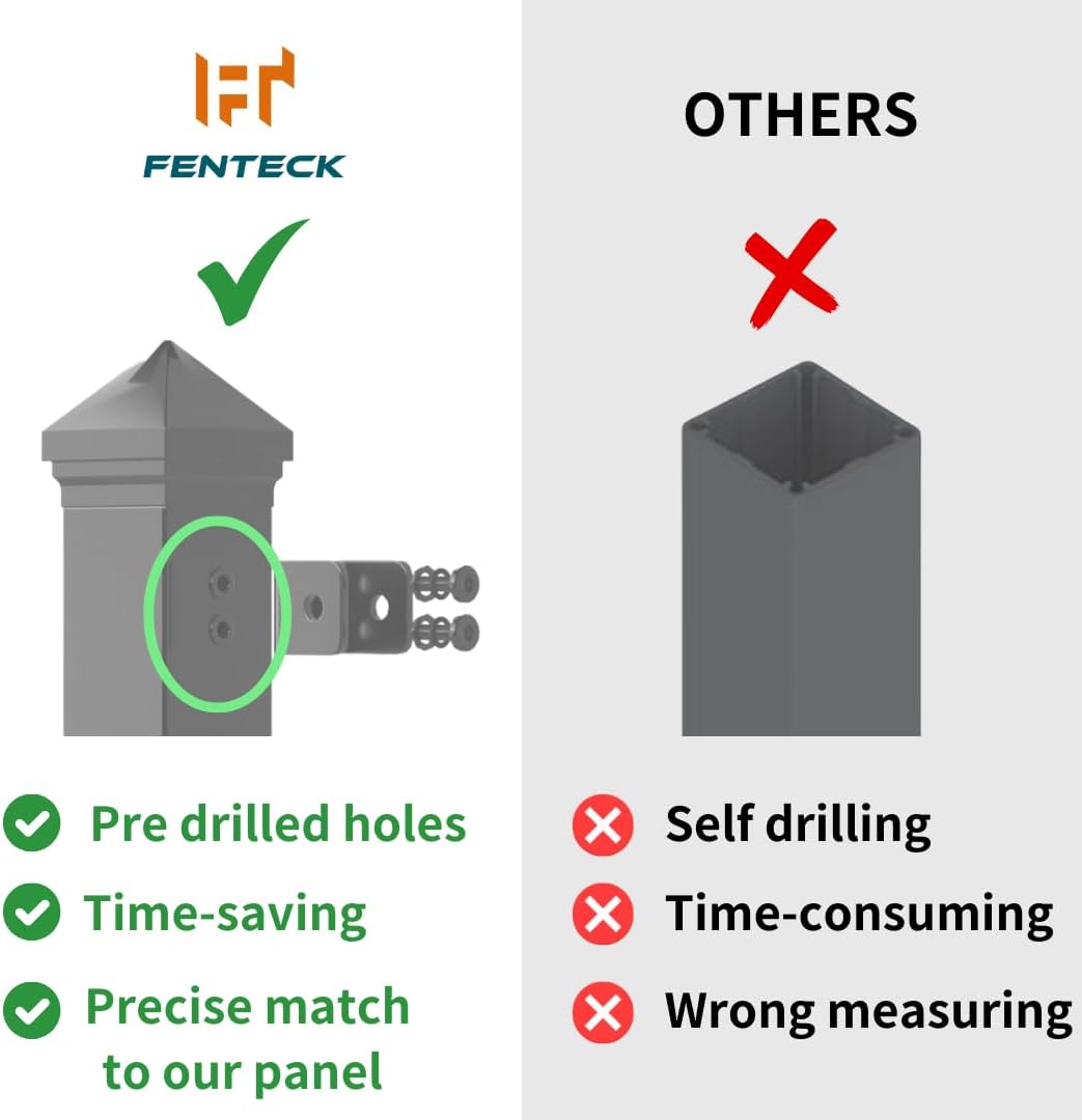 - HASSLE-FREE INSTALLATION: Our fence post features pre-drilled holes and comes with illustrated instructions, making the DIY setup process quick and easy while ensuring a professional finish.