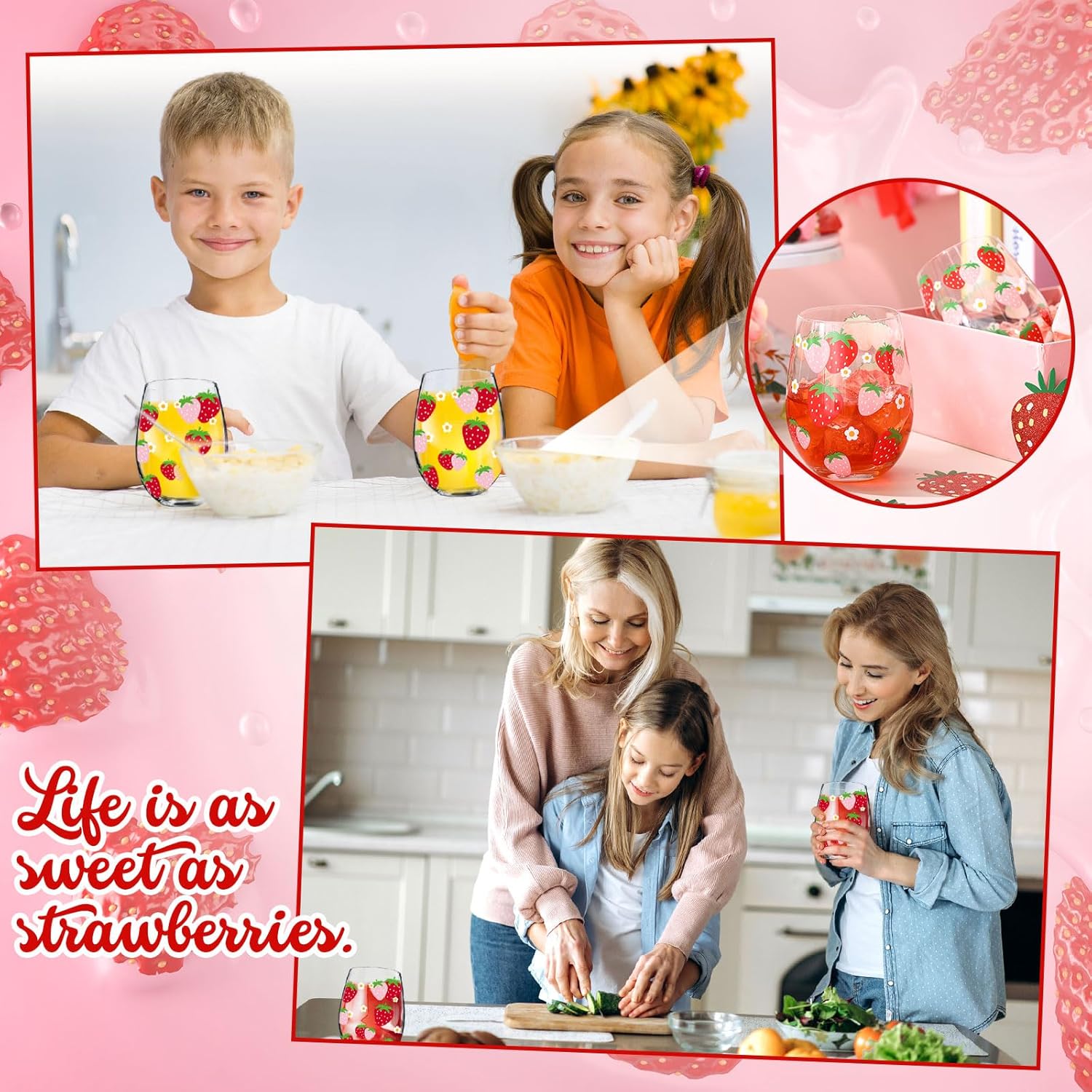 - Strawberry Theme: this strawberry glass cup feature colorful conversation strawberry patterns, ideally fitting the strawberry theme; They are ideal for serving you and your loved ones on a romantic evening; Made of lead-free glass, safe, healthy, and durable; Please note that they should only be hand washed
