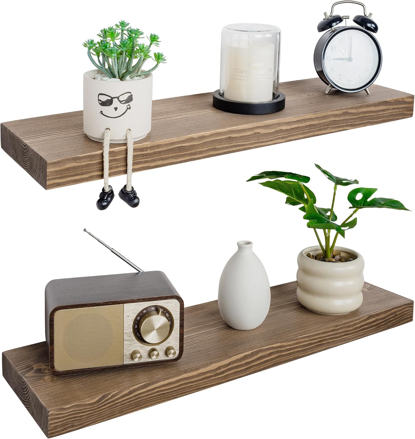 - MODERN RUSTIC LOOK - The 30 inch floating shelves are made of natural pine, and the wood has different nodes and grains, so the color of each shelf may be slightly different, but equally stunning
