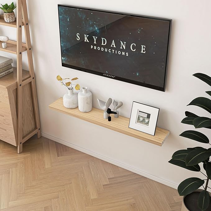- Extra Deeper & Thicker for Storage - Each board measures 48"W x 8"D x 1.4"H. Extra deeper and thicker design in order to bring maximizes storage space and weight capacity, even hold up to 60 lb. This floating shelf taking up zero square feet, reduces clutter and highlights décor in compact spaces. It can help make full use of the empty wall, making it much more space-saving and making your room look larger and tidier.