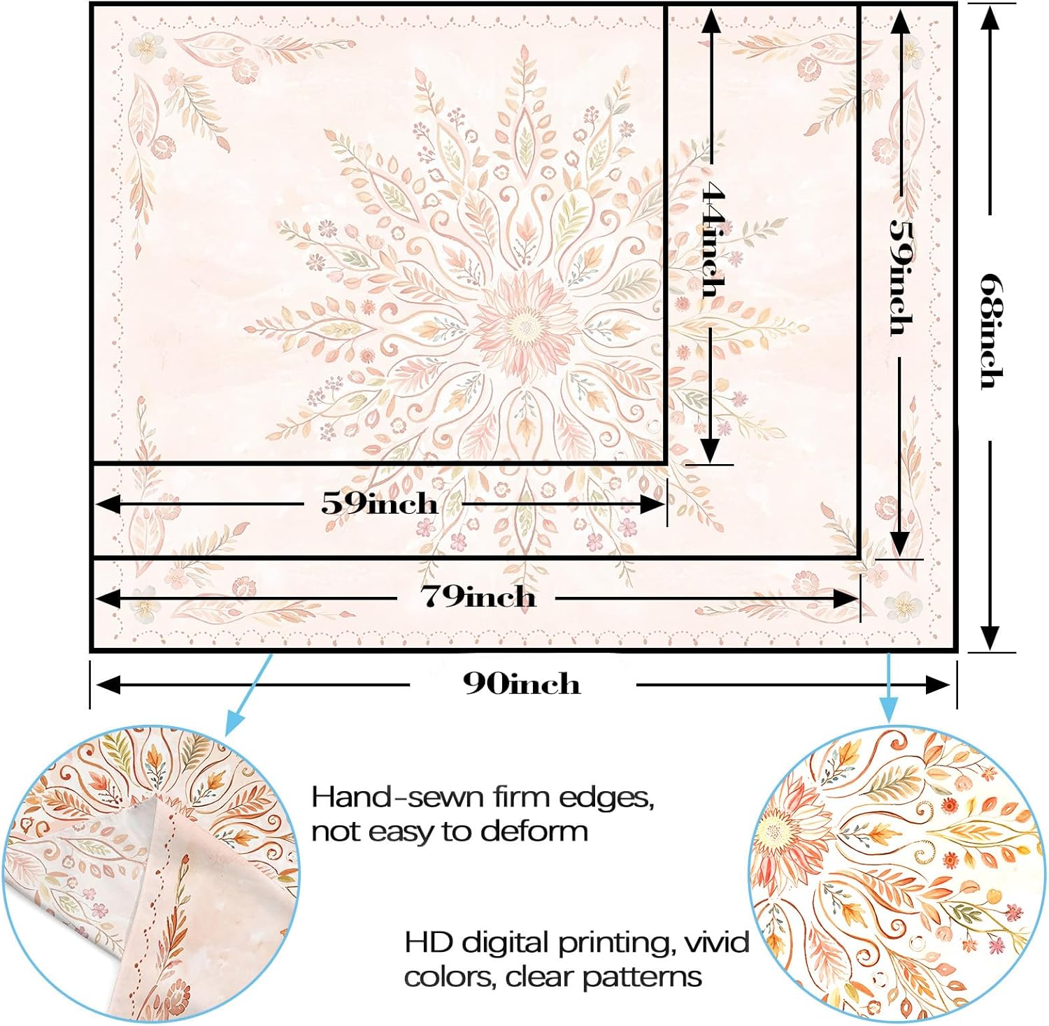 - Delicate Floral Mandala Design: This Lunerfex tapestry features a beautiful floral mandala pattern with soft pink tones, adding a serene and artistic touch to your bedroom or living room.