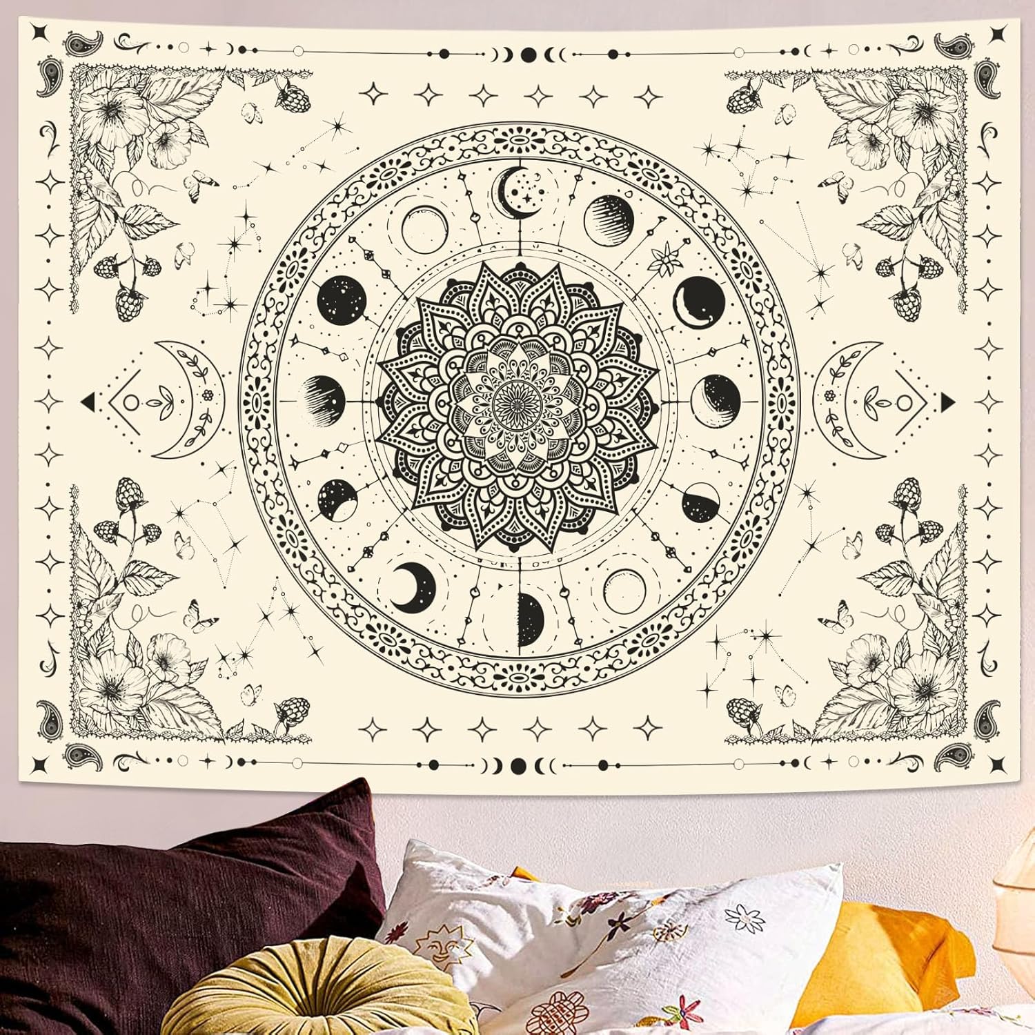 Lunerfex Mandala Moon Tapestry Boho Tapestry for Bedroom Black and White Tapestries Wall Hanging Living Room Wall Art and Home Decor 70x90