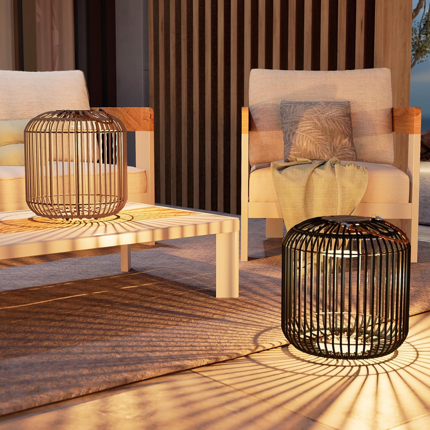 - LOW-MAINTENANCE: Constructed with a powder-coated steel and weather-resistant wicker, this lights withstands IP54-rated rain, wind, and sun exposure. Non-slip base ensures stability guarantee lasting beauty season after season