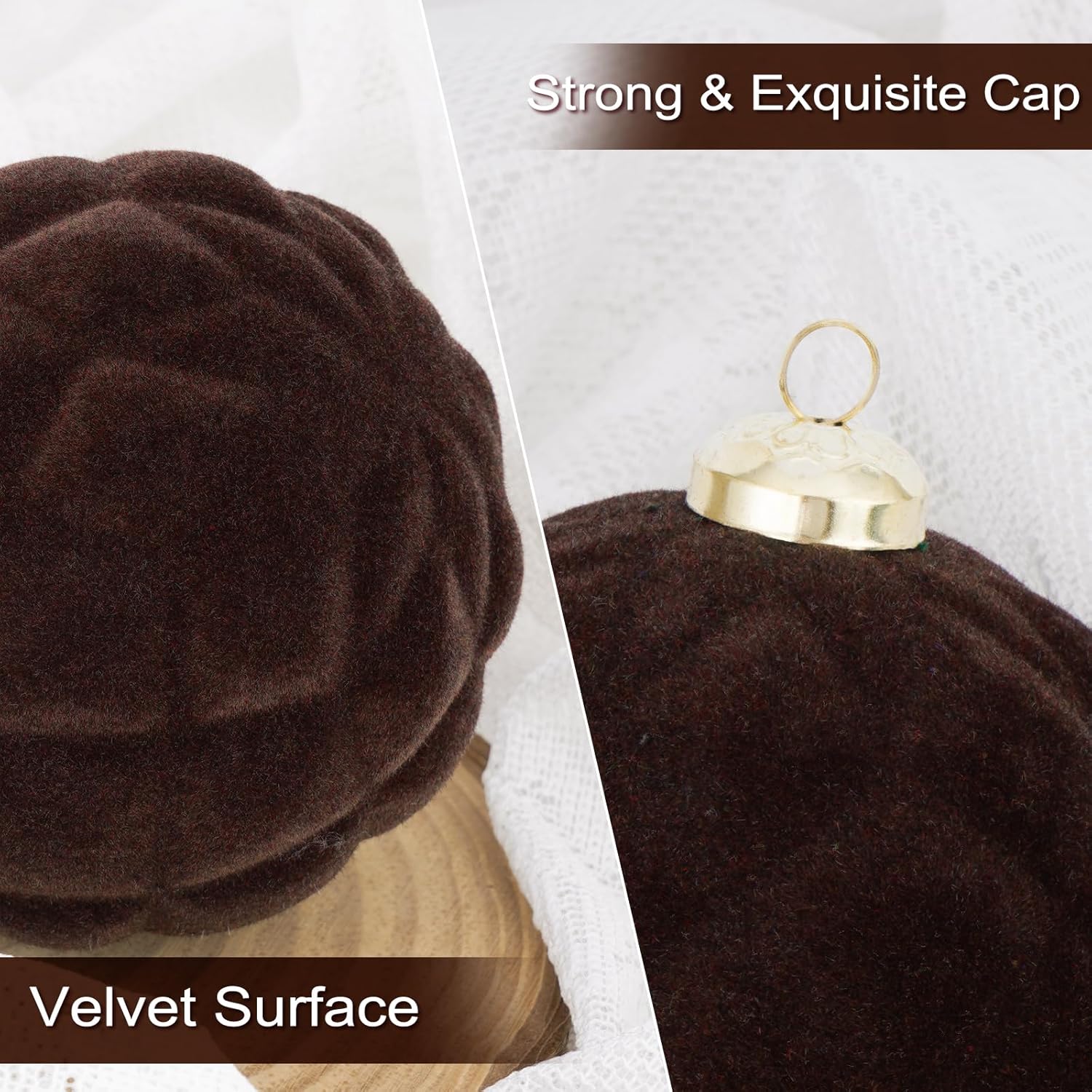 46PCS Velvet Christmas Ball Ornaments Set, Flocked Shatterproof Xmas Tree Decor, Assorted Hanging Ornaments with Loop for Holiday Home Decor, Christmas Tree, Mantel, Party Decoration (Brown)