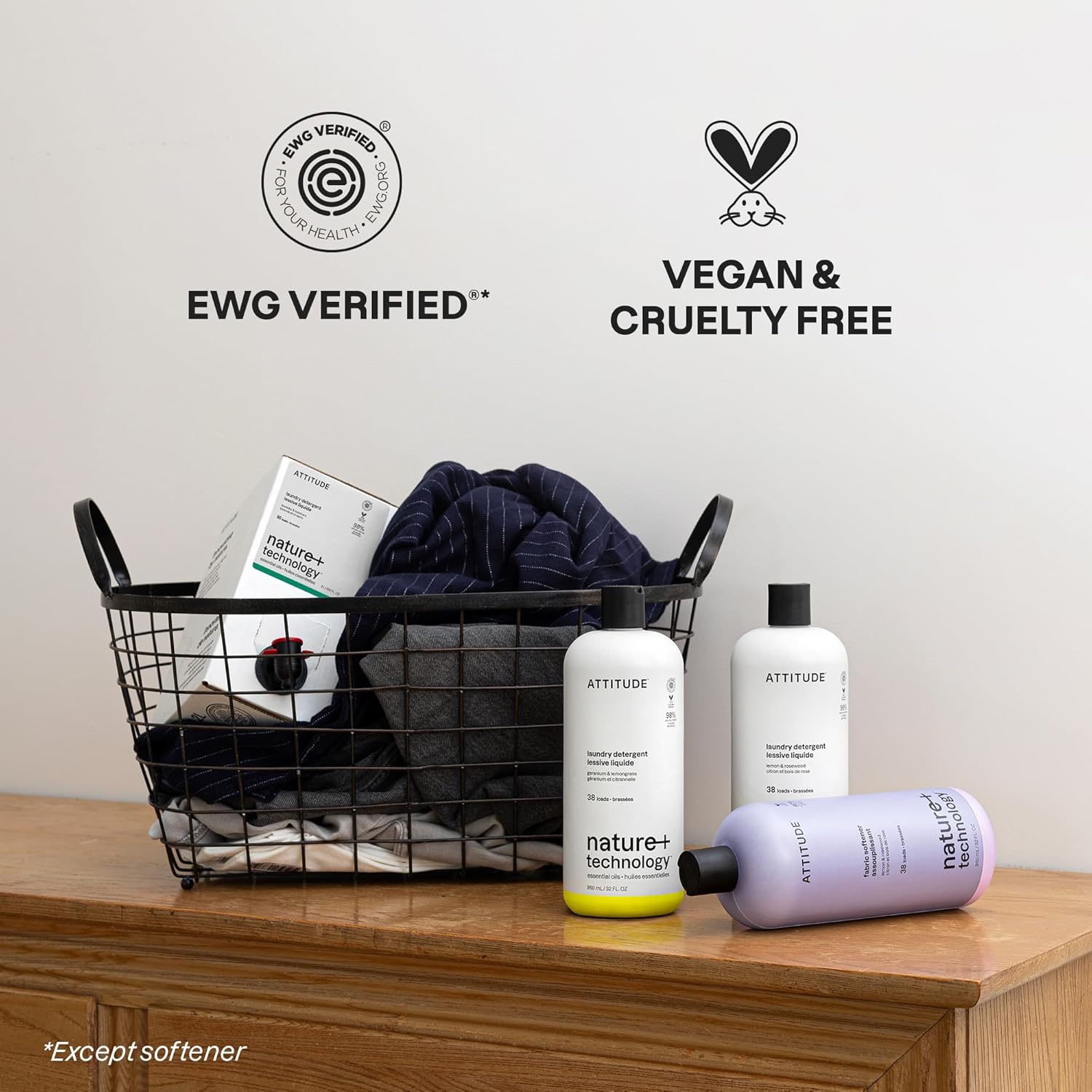 ATTITUDE Liquid Fabric Softener, Natural Origin Ingredients, For White and Colored Clothing, Deodorizes, Gentle on Delicate skin, Infused With Essential Oils, Geranium & Lemongrass, 38 Loads, 32 Fl Oz