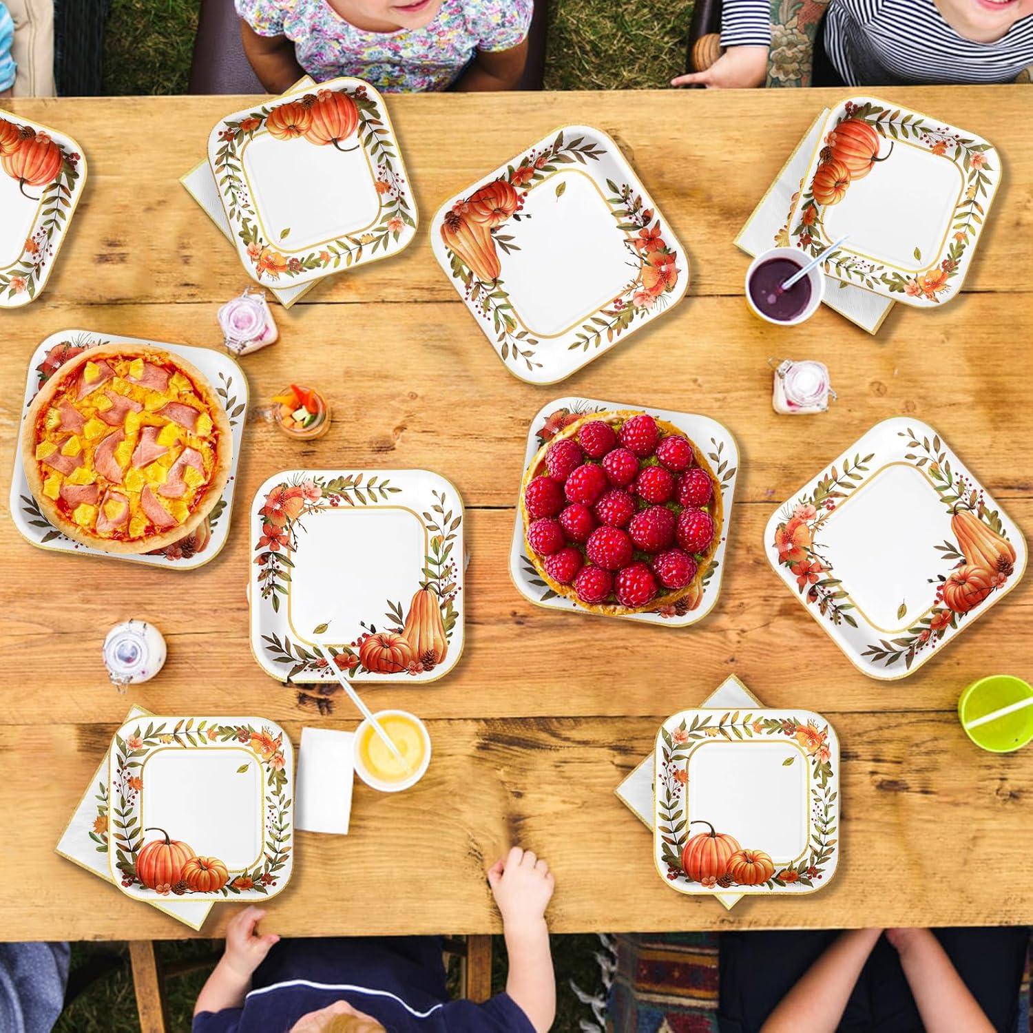 - Save Time: This thanksgiving party decorations are an ideal replacement for traditional party plates. You only need to dispose of the fall themed dinnerware set after use, no need to wash the dishes and other tedious tasks.When the party is over, you can spend more time with family or friends and less time cleaning up