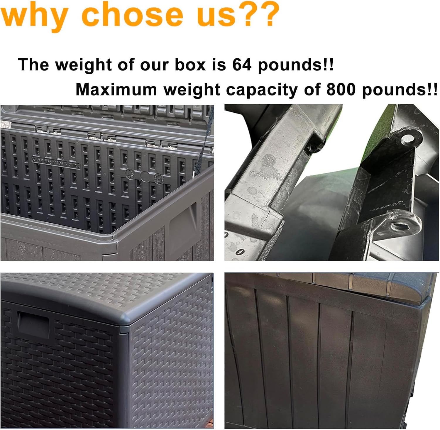 - Durable Resin Construction: Built with double-wall resin, this waterproof and weather-resistant deck box ensures long-lasting reliability and supports the weight of three adults for extra seating