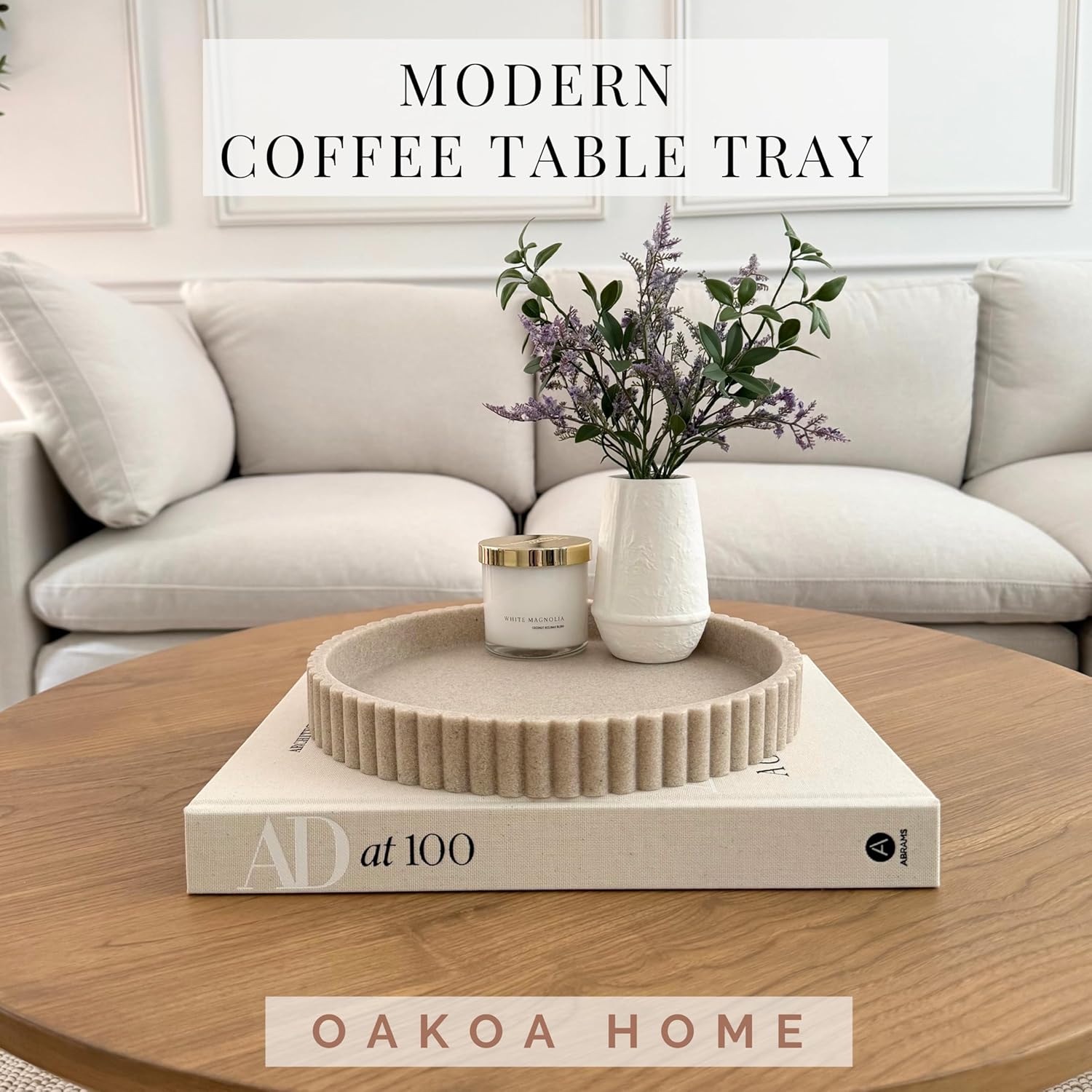 OAKOA Beige Resin Decorative Trays for Decor - Coffee Table Decor Tray Ottoman Tray for Living Room - Nightstand Round Table Centerpiece for Candle