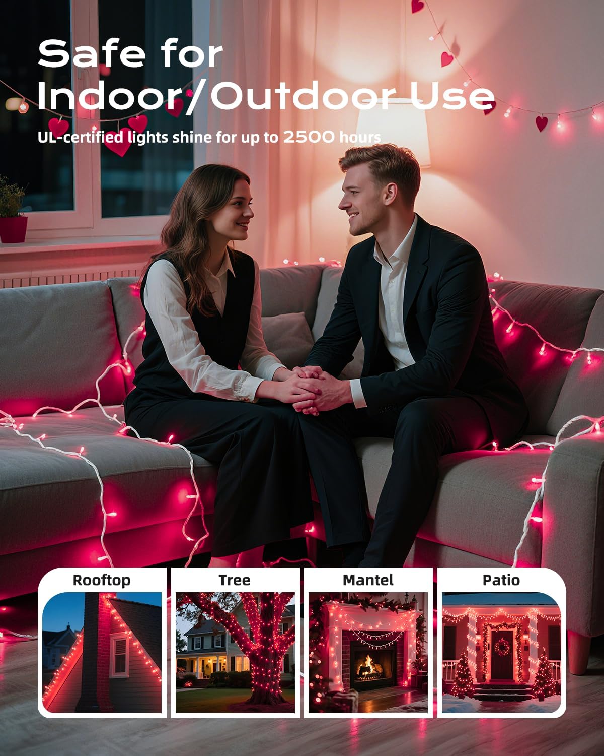 - 【Versatile Indoor and Outdoor Use】Coated with white wire, these 100-count Valentine's Day pink tree lights are suitable for both indoor and outdoor displays. Perfect for adding a festive touch to patios, bedrooms, and seasonal decorations;