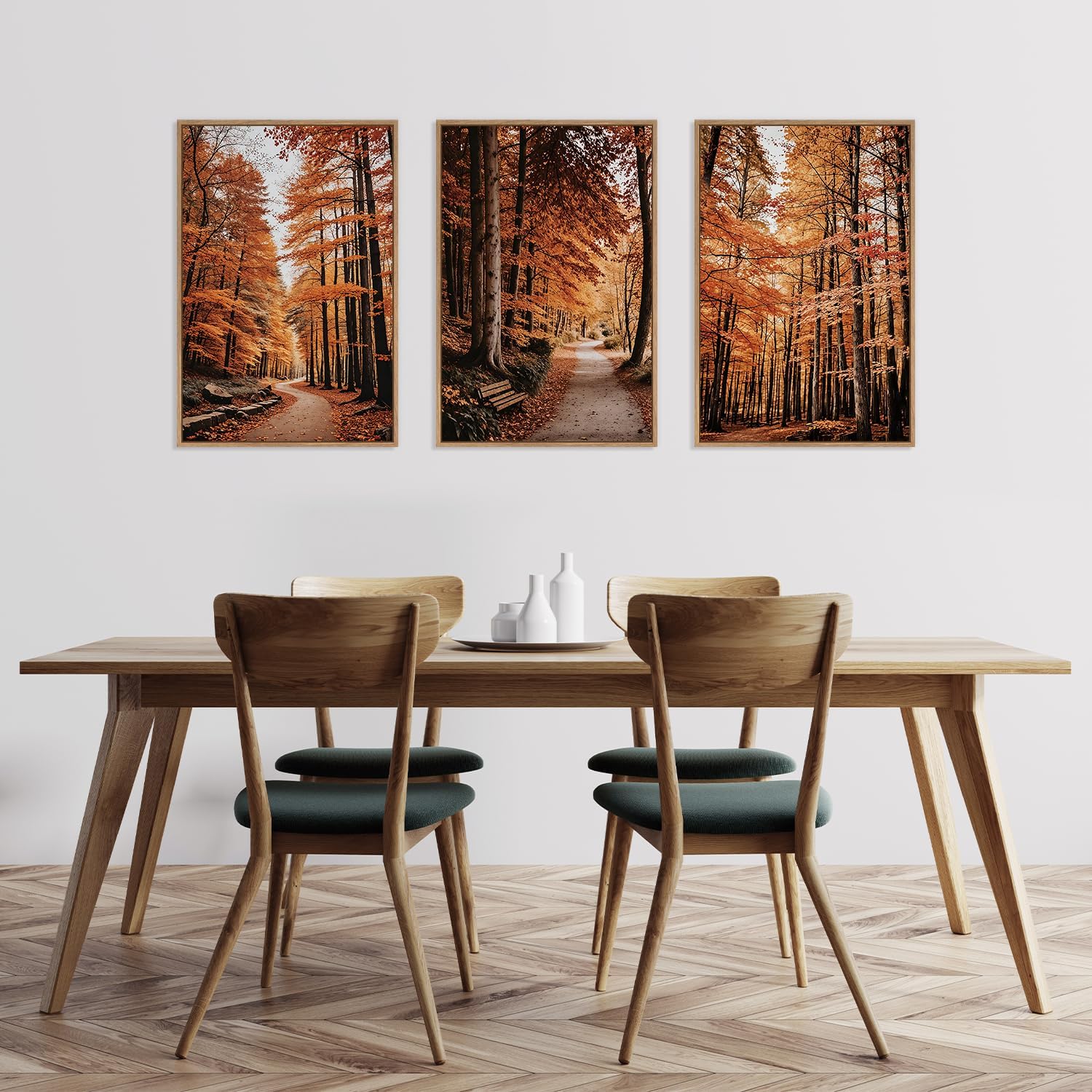 HLNIUC Autumn Forest Framed Canvas Wall Art,Fall Nature Pictures Wall Decor Set of 3(16”x24”) Large Maple Trees Trail Scenery Wall Painting,Modern Fall Landscape Art Print for Living Room,Bedroom