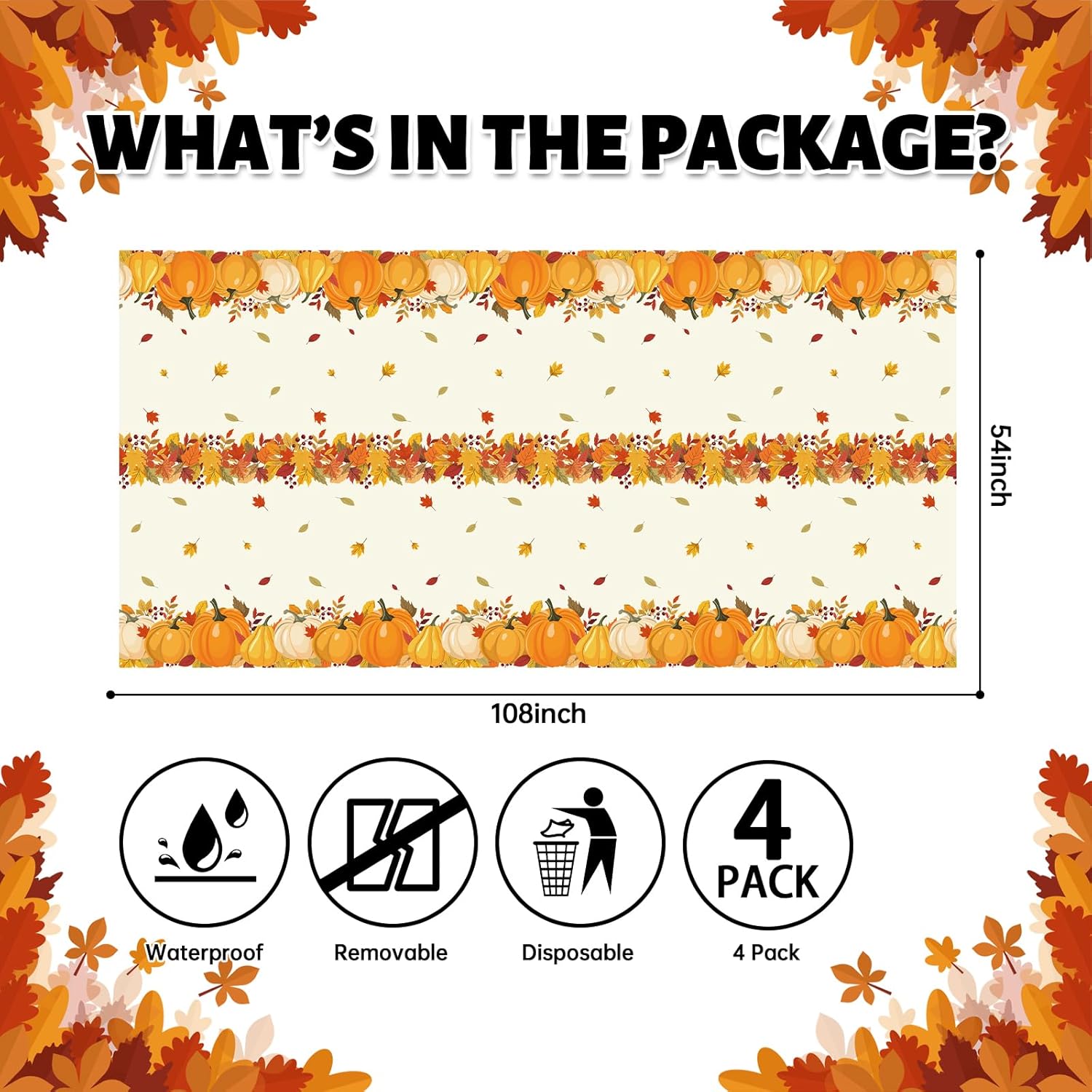 - 4-Pack Value Set:Each package includes 4 durable Thanksgiving tablecloths - perfect for covering your dining table, buffet station, kids' table, and dessert area during holiday gatherings.